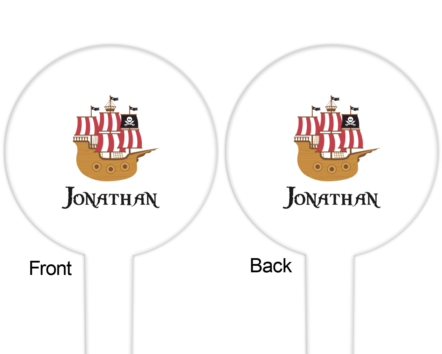 Pirate Ship Designs for 6" Round Plastic Food Picks - White - Double-Sided