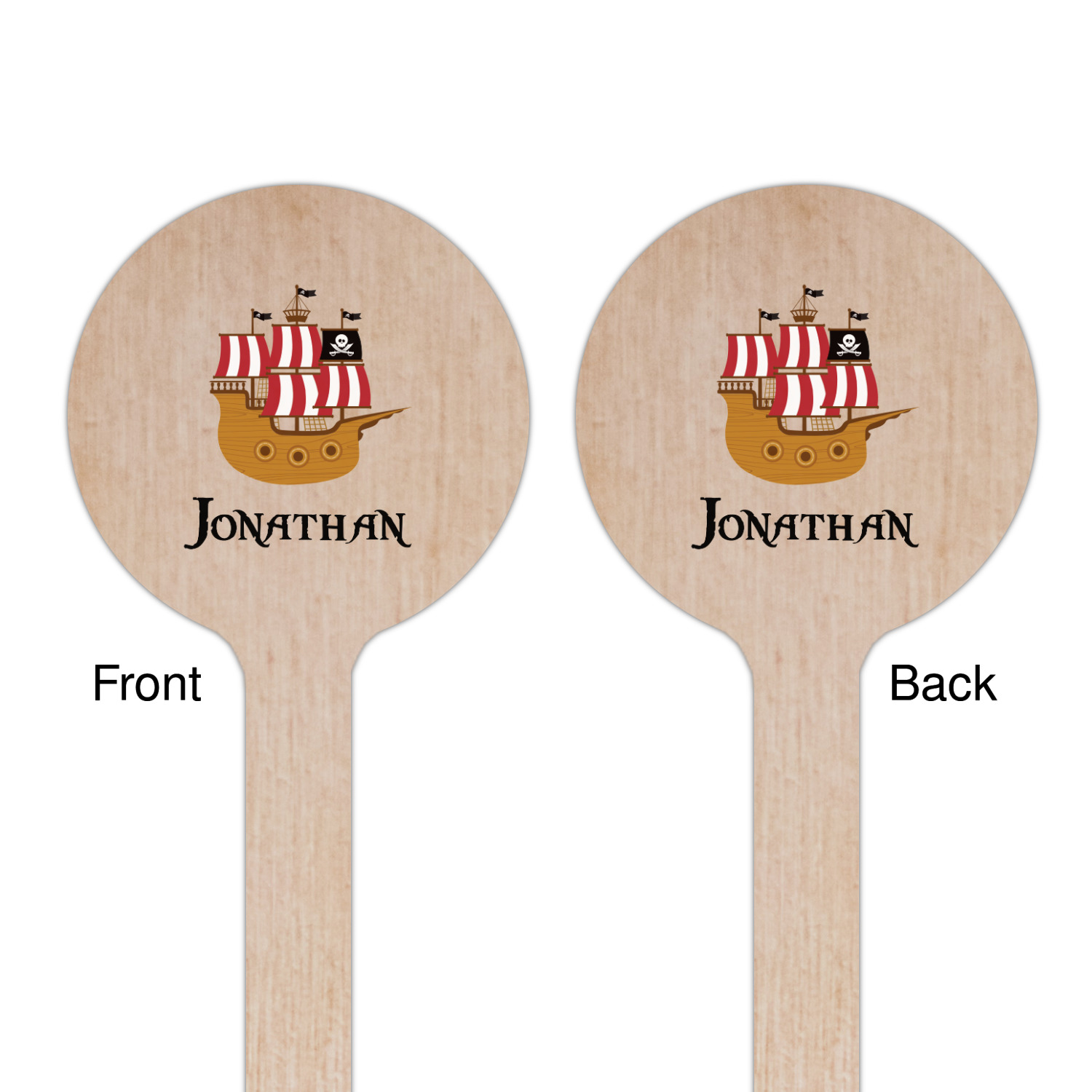 Pirate Ship Designs for 7.5" Round Wooden Stir Sticks - Double-Sided