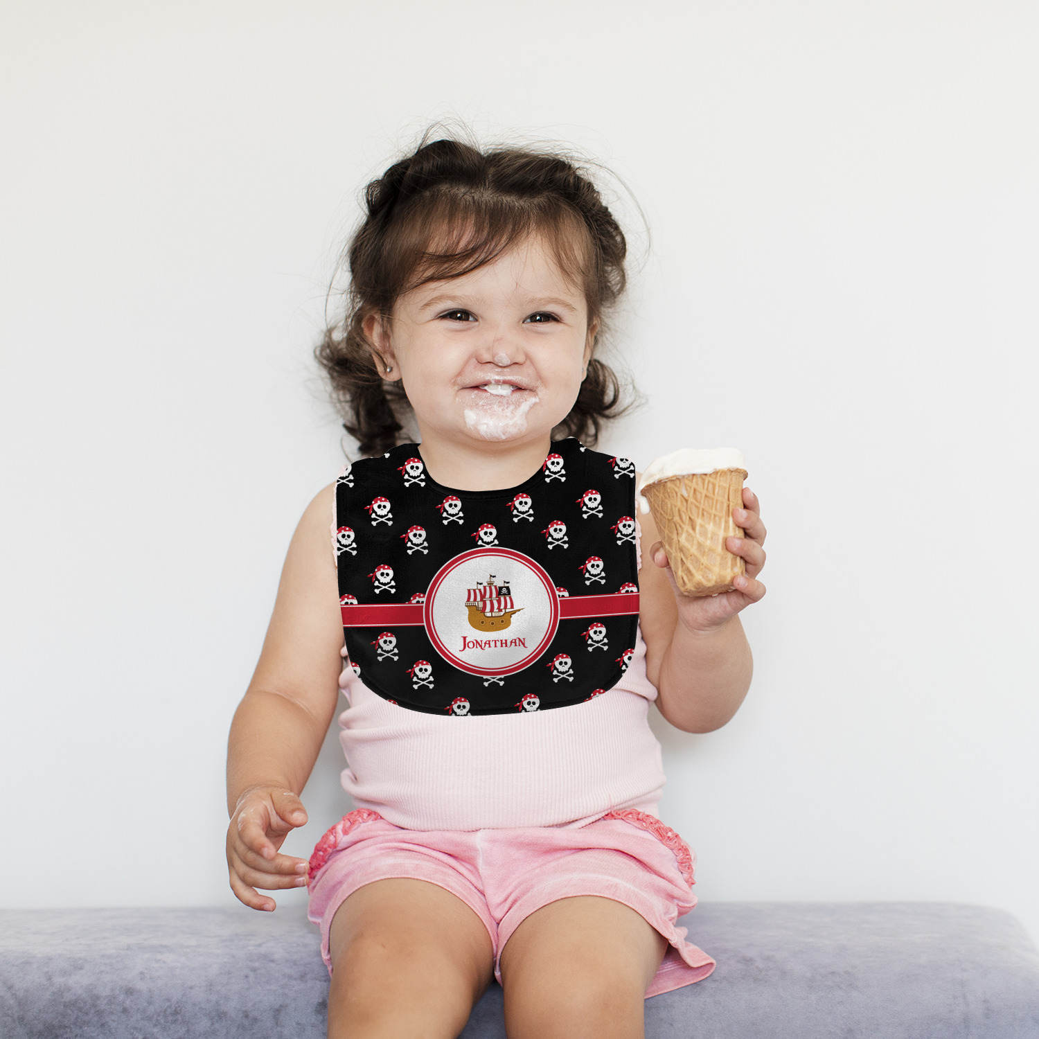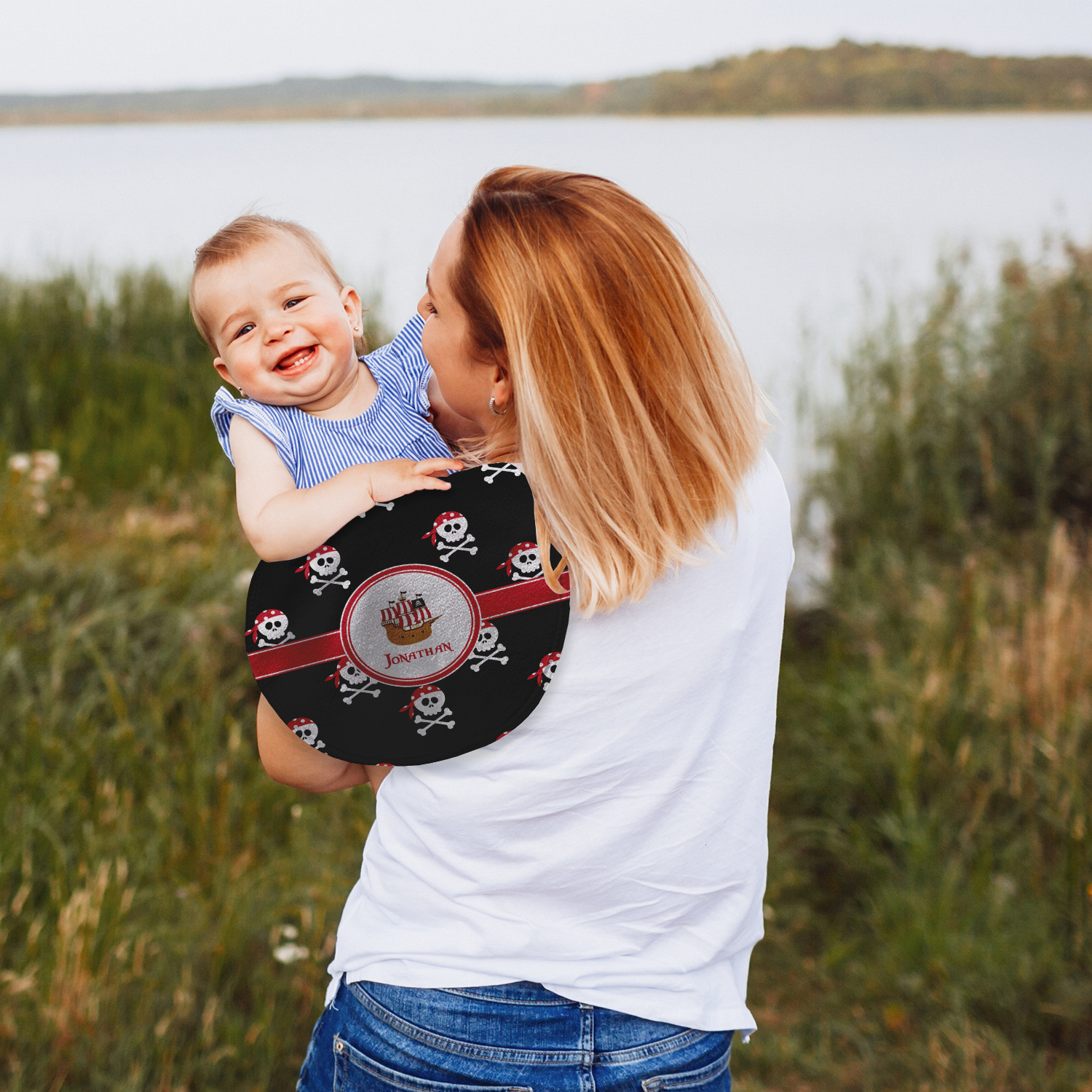 A circle label will have your little pirate imagining he or she is looking through a telescope seeing a pirate ship in the distance. Add personalization to bring this entire design to life.