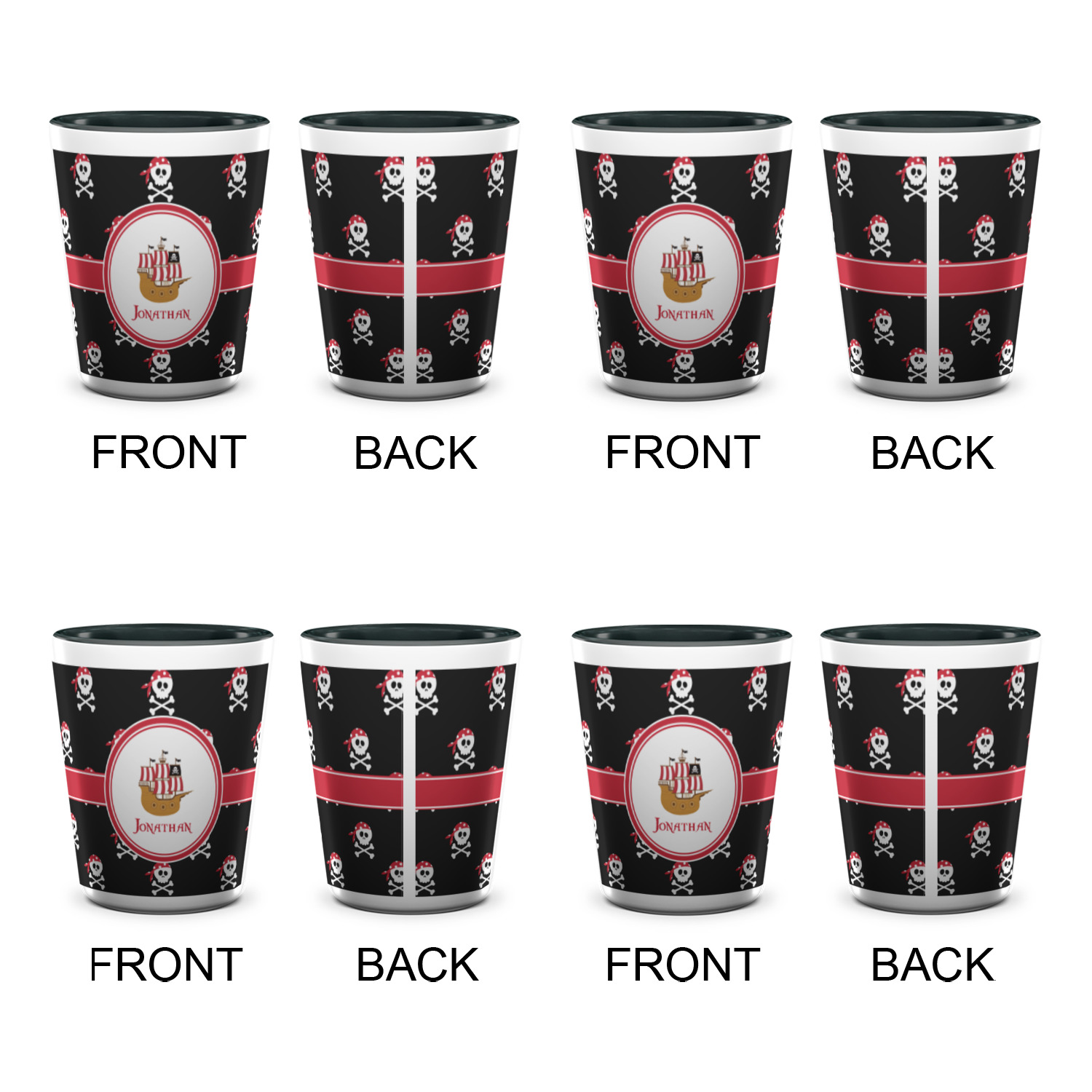 Pirate Ship Designs for Ceramic Shot Glasses - 1.5 oz - Two Tone - Set of 4