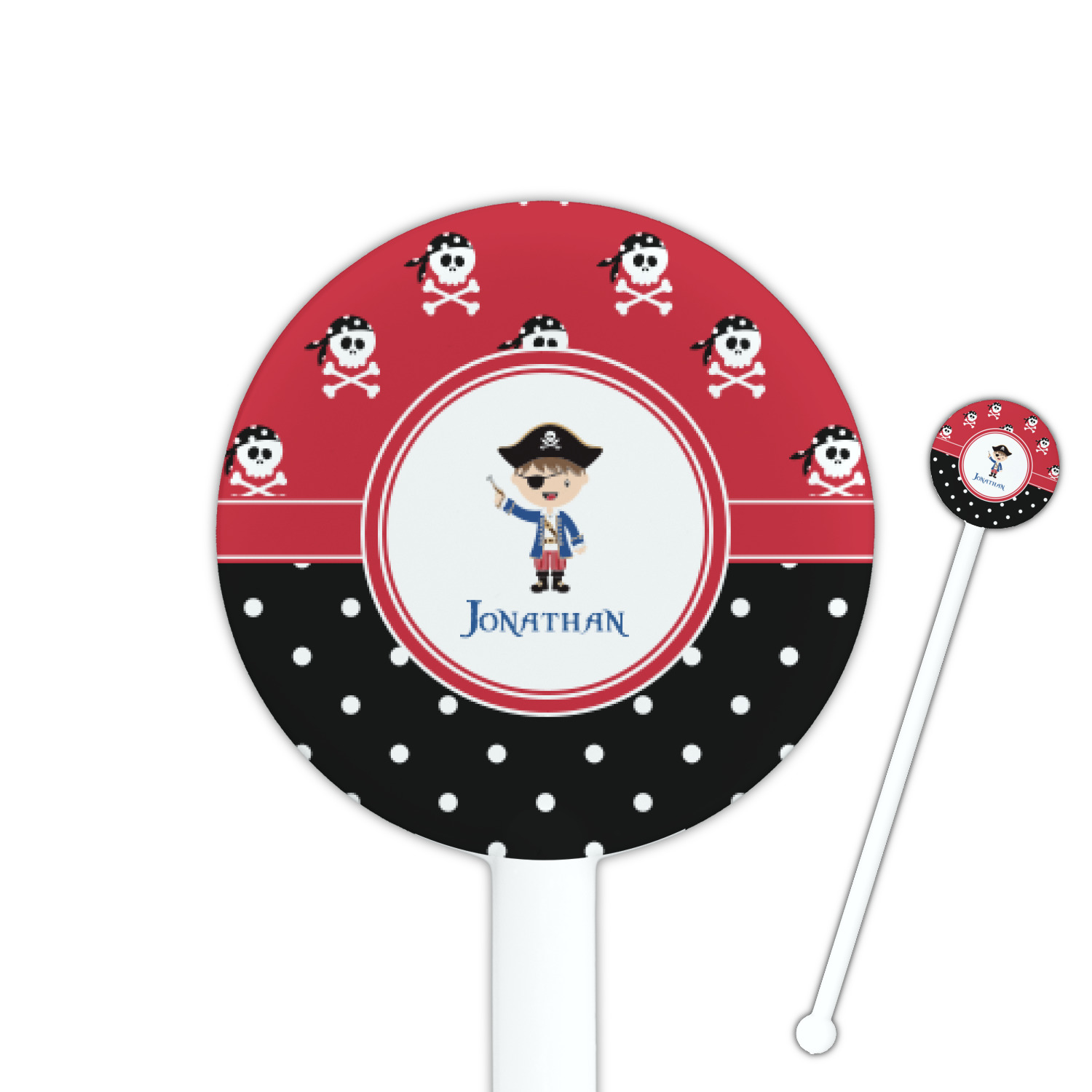Pirate Boy Designs for 5.5" Round Plastic Stir Sticks - White - Double-Sided