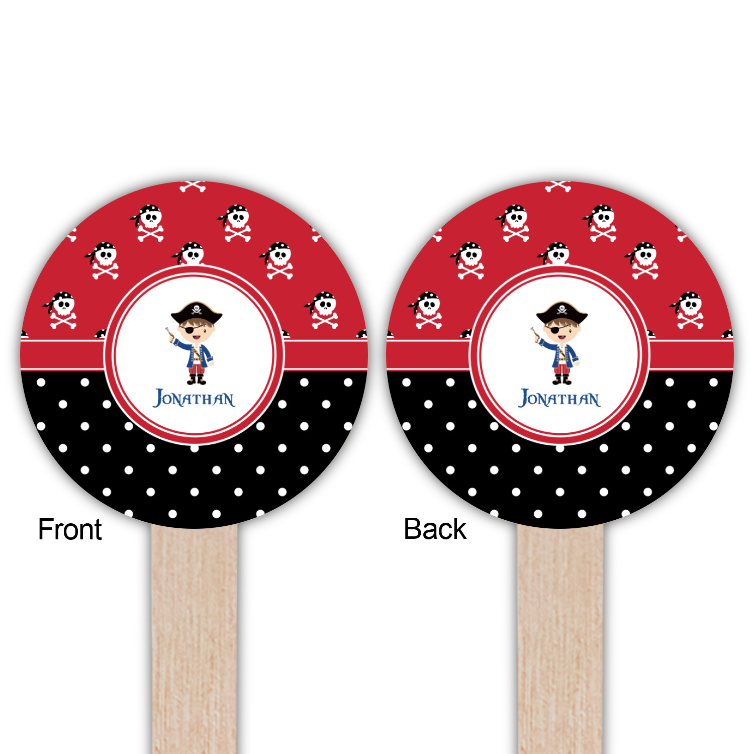Pirate Boy Designs for 6" Round Wooden Food Picks - Double-Sided