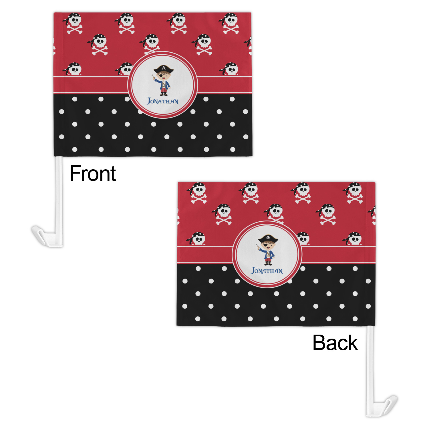 Our personalized flags are made from a durable, yet lightweight cloth that will proudly bear your logo or design of choice, while withstanding the outside elements. We have two size options - 8" x 11" and 11" x 15". Both come with a flag pole which includes a clip that secures the pole to the side window, whether it is rolled up or down. The flags are printed on both sides to display your design from all directions.