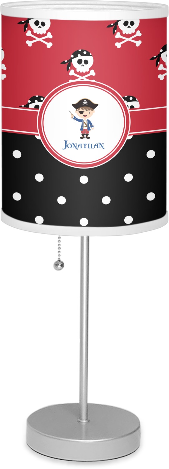 A wide band of red, trimmed in white highlight the pirate boy in the circle label. Add your personalization in the label to complete the look.