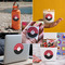 A wide band of red, trimmed in white highlight the pirate boy in the circle label. Add your personalization in the label to complete the look.