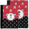 Ahoy there matey, do you have a pirate boy on your hands? If so, then he is sure to love this classic black, red, and white skull and crossbones pirate print. The skull and crossbones are highlighted using a backdrop of red. They are adorned with black and white polka dot dew rags. The coordinating bottom pattern of the black and white polka dots, taken from the skull and crossbones' dew rags, ties the entire design together.