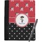 These personalized padfolios are made from a black, polyester microfiber and features a standard, 50-page notepad. However, these black padfolios can accommodate a pad with up to 100 pages. This model also features a slot pocket for any loose sheets of paper, small pockets for business cards, and an elastic band to secure a pen. We print your personalization across the front of this notepad portfolio in bright, vibrant color. These padfolios come in 2 sizes, Medium - approximately 10.25" x 8" for 5" x 8" paper and Large - approximately 12.5" x 8.5" for 8.5" x 11" paper.