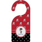 A wide band of red, trimmed in white highlight the pirate boy in the circle label. Add your personalization in the label to complete the look.