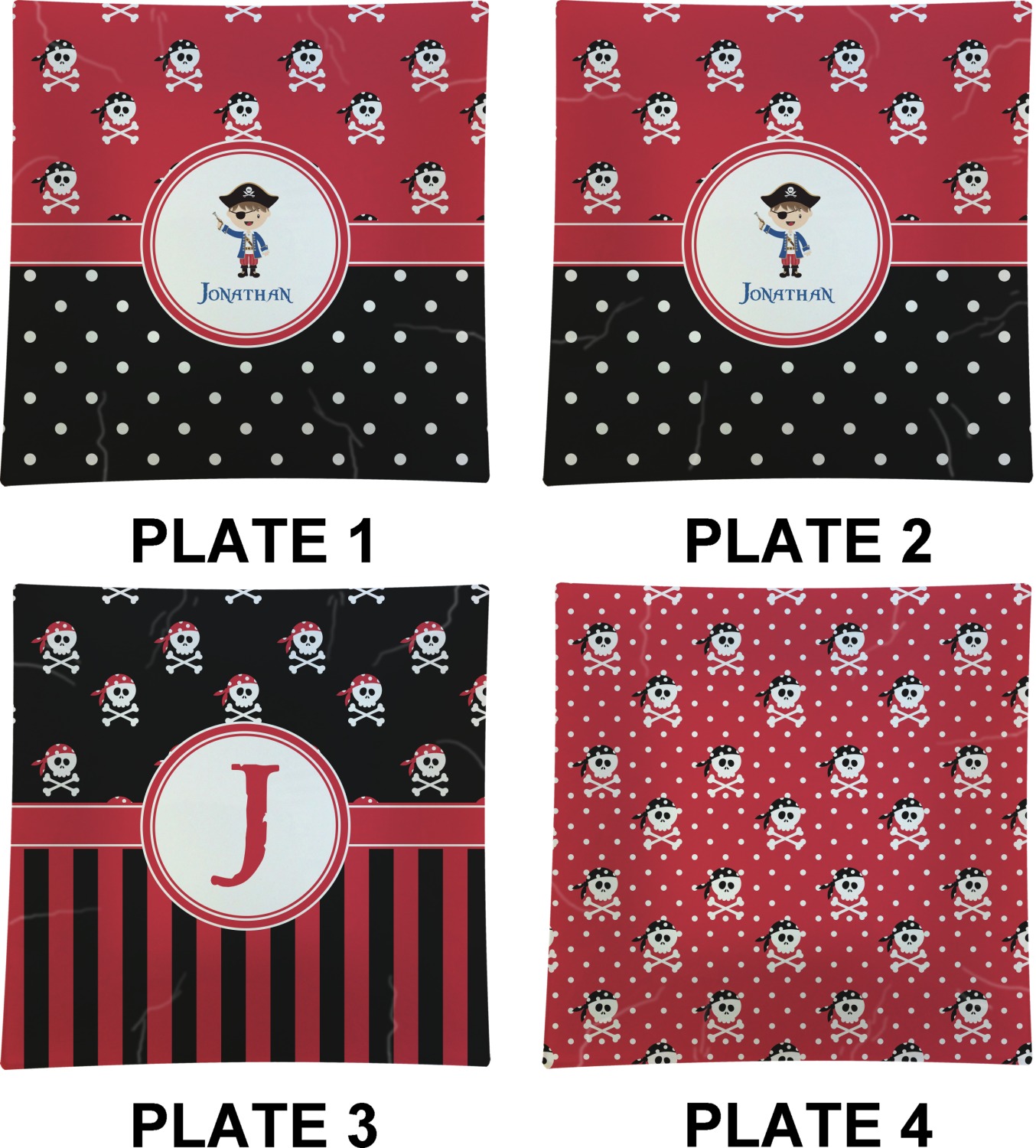 Pirate Boy Designs for Glass Square Lunch / Dinner Plates 9.5" - Set of 4