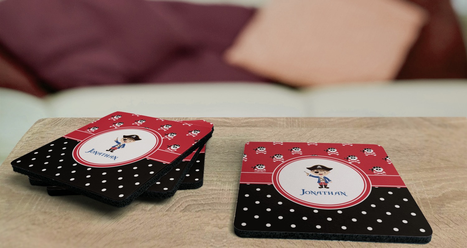 Pirate Boy Designs for Square Rubber Backed Coasters - Set of 4