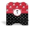 A wide band of red, trimmed in white highlight the pirate boy in the circle label. Add your personalization in the label to complete the look.