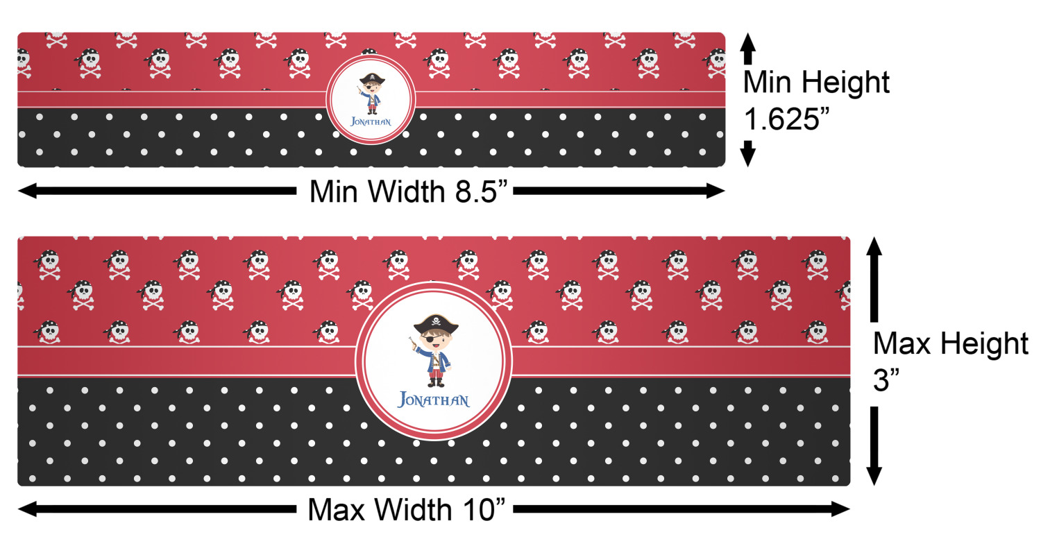 A wide band of red, trimmed in white highlight the pirate boy in the circle label. Add your personalization in the label to complete the look.