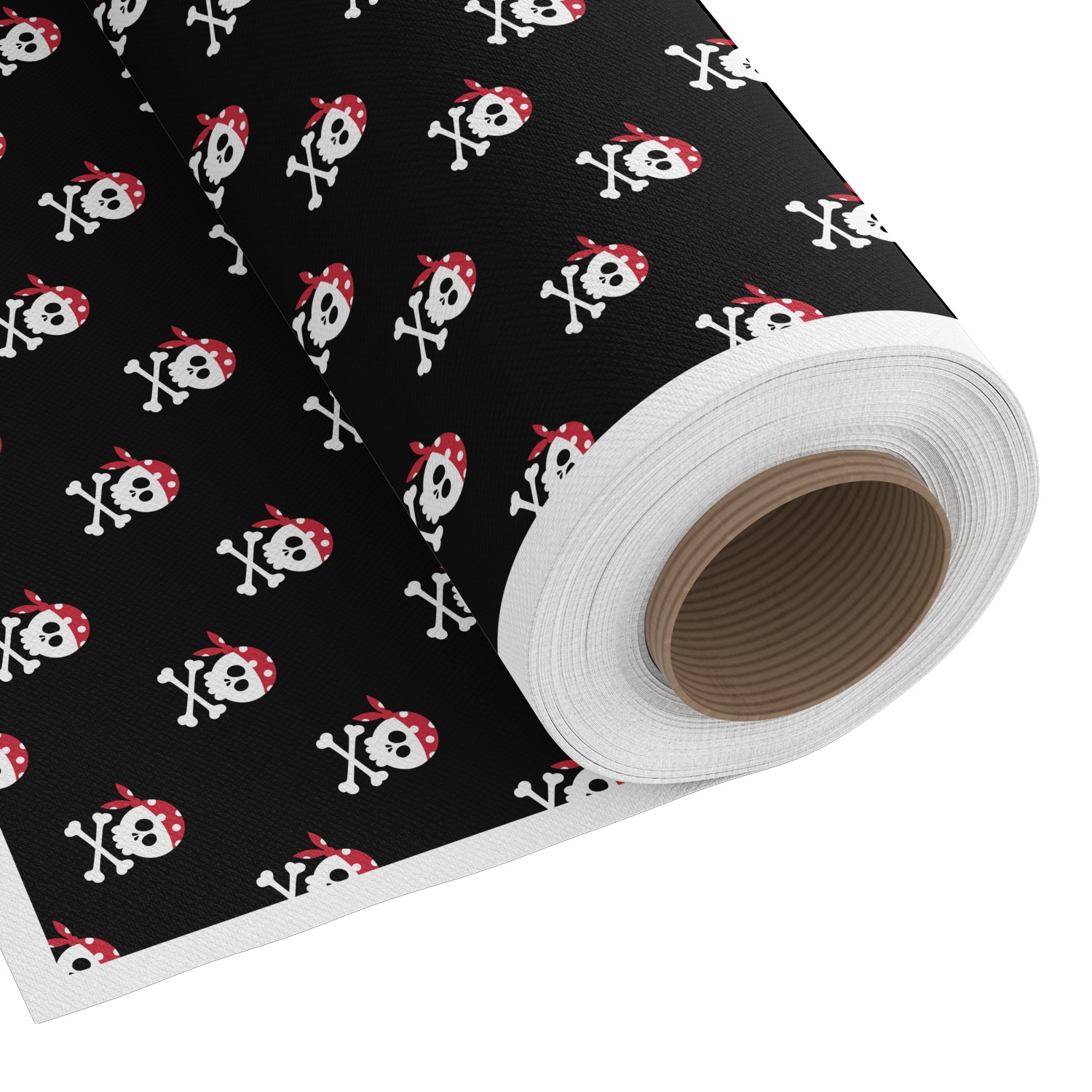 Pillage and plunder is the name of the game with this pirate design. Set on a backdrop of black, the skull and crossbones, sporting red and white polka dot dew rags, are the showcase in this design. A wide band of red trimmed in white bring these classic colors together.
