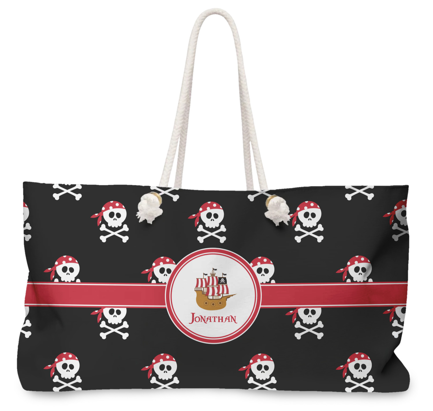 Our oversized weekender tote with rope handles is perfect for your weekend at the beach or on the town. This large tote are 24" W X 13" H, with a 5" gusset and a 27" thick rope handles with a knot that is put through a grommeted brass hole.