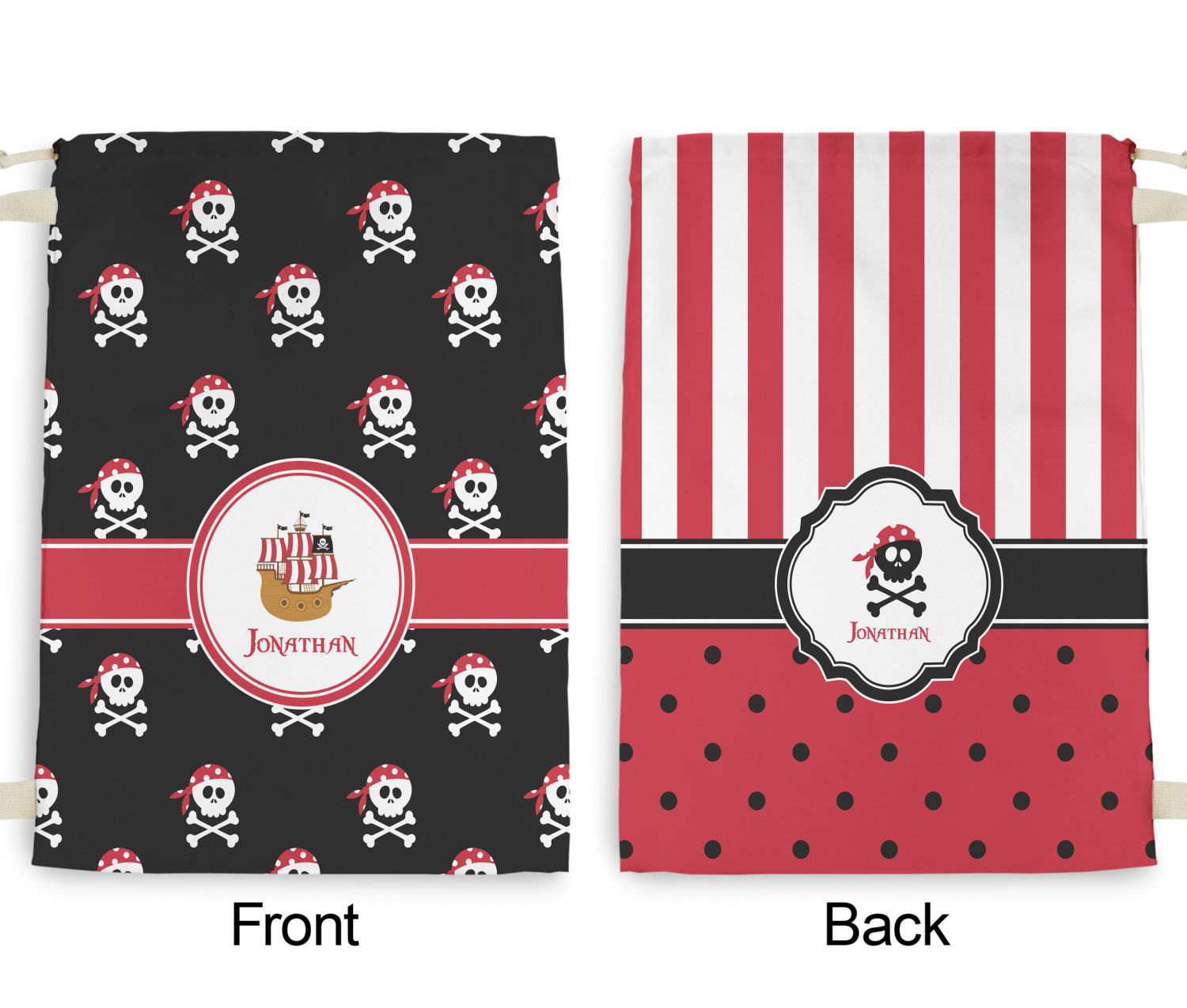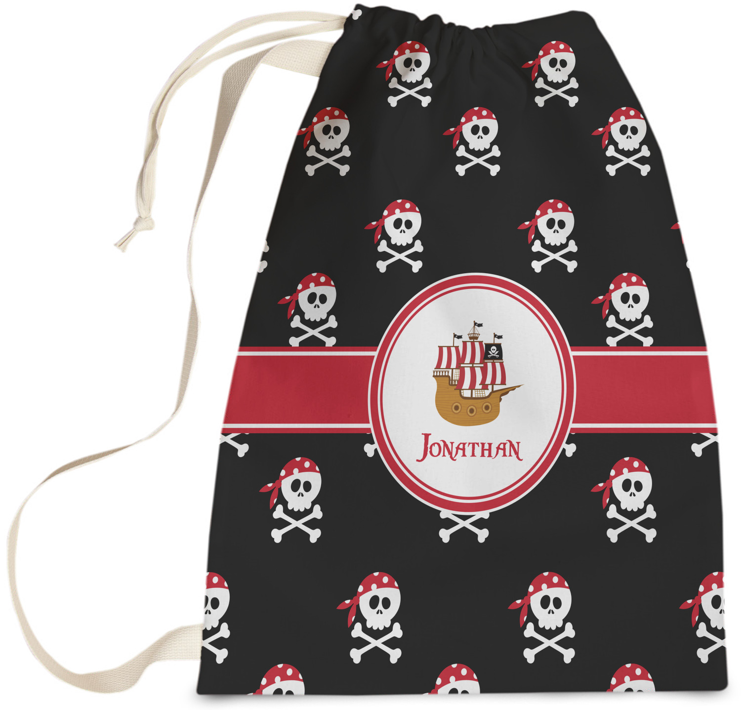 Carry your laundry in style with these customized laundry bags. Available in two sizes, featuring a natural colored woven strap and a cinch cord, these bags hold a lot of clothes or anything else you want to fit in them.