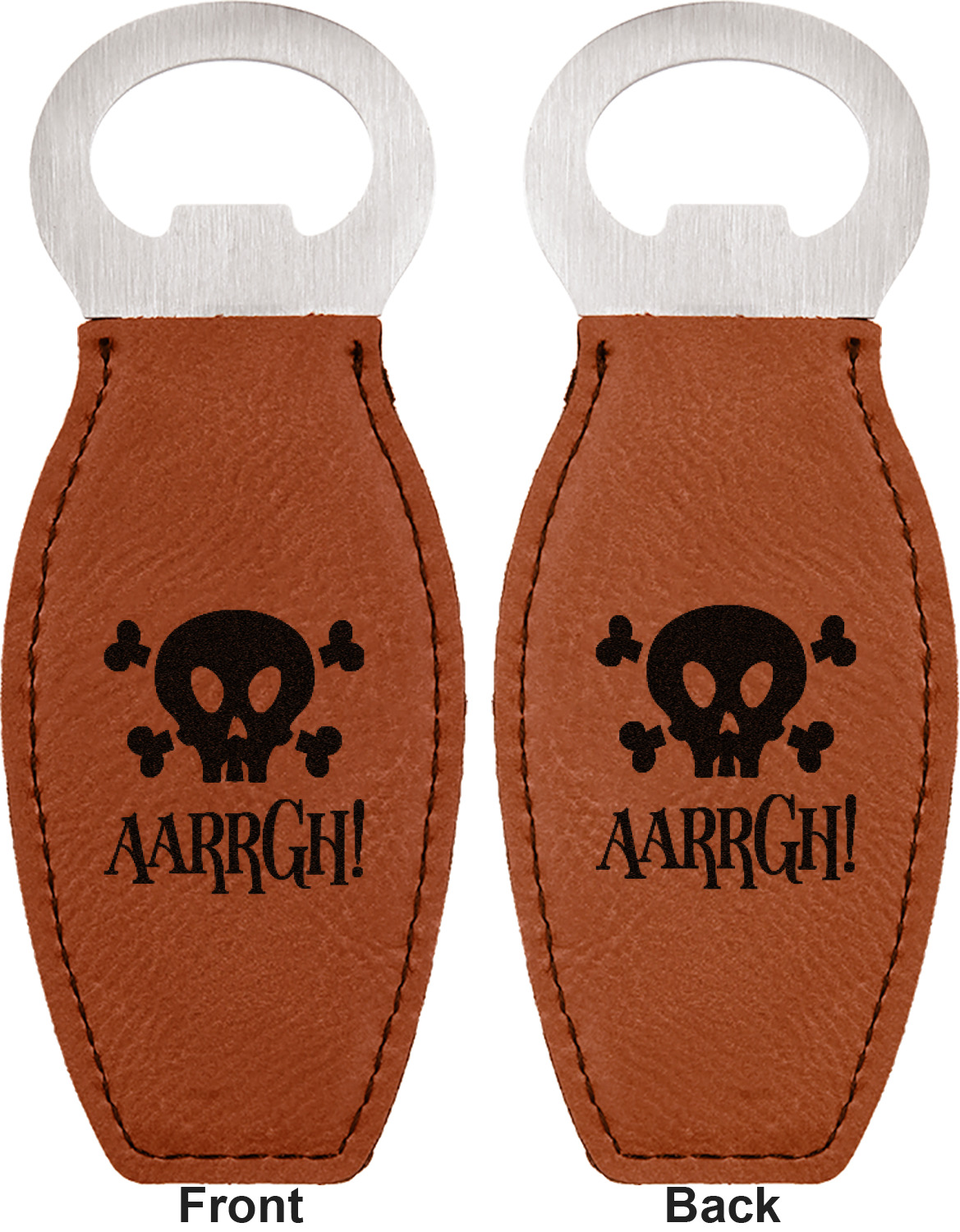 Built from stainless steel, these custom bottle openers are wrapped in a cognac-colored leatherette. Sharp, black stitching lines the edges for extra durability and a finished touch. Your personalization is laser-engraved onto the surface of this leatherette, leaving behind a crisp, black coloration. At 4.6 by 1.8 inches, this beer bottle opener gives you much of leverage when trying to open a stubborn bottle. On the opposite end of the opener, you'll find a magnet that you can use to display your new, unique bottle opener!