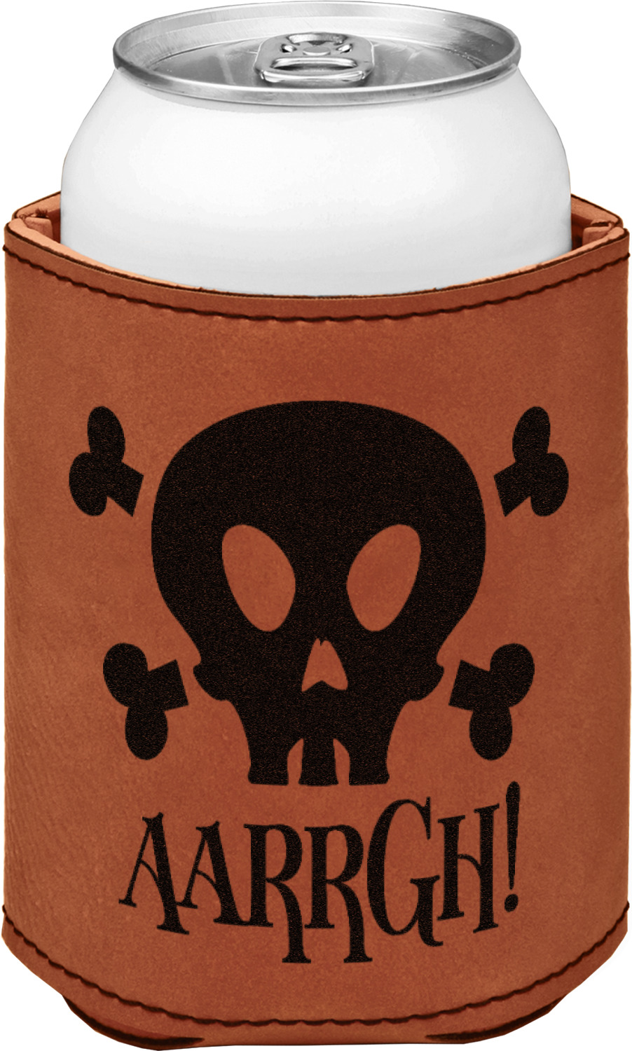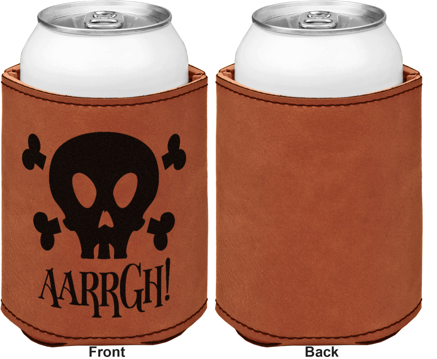This can sleeve is made from a cognac-brown leatherette and stitched with a sturdy, black thread. A slim padding lines the inside of your can sleeve to allow for a better fit once your drink is inserted. The sleeve itself measures at 4 by 4.5 inches, allowing this custom can sleeve to accommodate most canned drinks. Your personalized design can be engraved on the front and back, or solely the front. When laser-engraved, your design appears as a black coloration which contrasts the leatherette nicely.