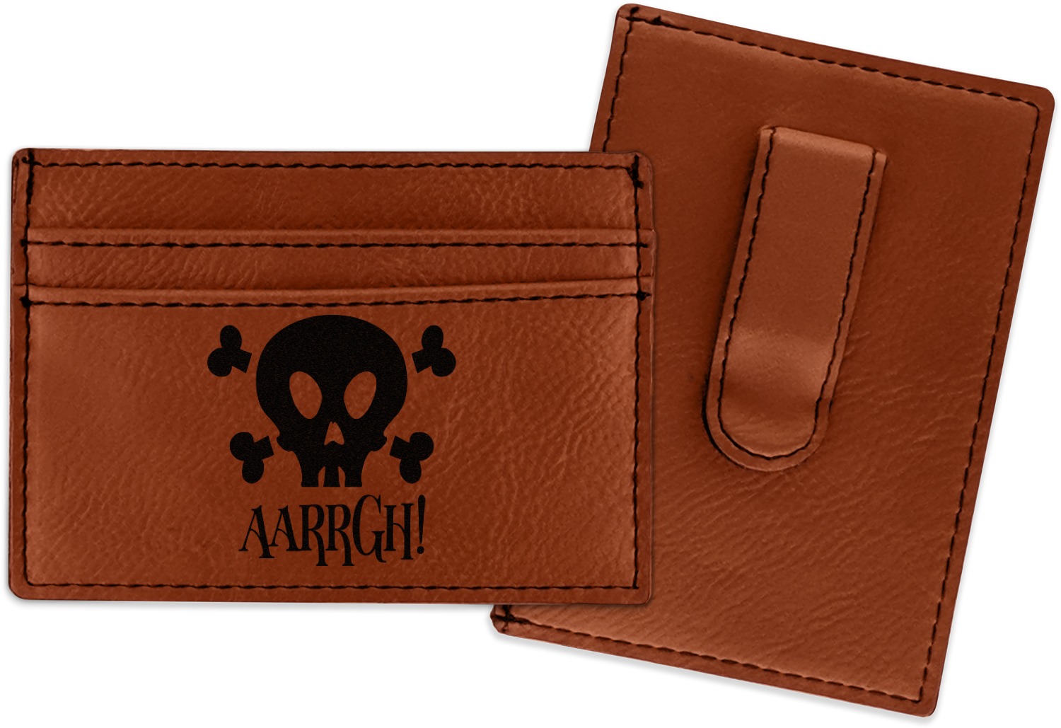 Made from a smooth brown leatherette material, these money clip wallets are the perfect accessory. They measure at approximately 4" x 2.75". On one side there is a money clip where you can slip in your cash. On the other side are three card slots for an ID and credit card or two. The money clip wallet will be laser engraved with your design on the side with the credit card slots. The graphic will come out as a black color.