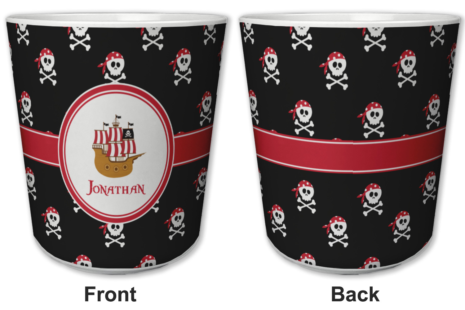 Made from a durable plastic, these tumbler cups are strong enough to withstand daily use and are perfect for young children. Each of these personalized plastic cups holds 6 ounces and measure at approximately 3" x 3" x 3.25". Place them in the bathroom as a rinsing cup, or give them to your kids during mealtimes. These 6 oz. plastic cups are BPA free, microwave and dishwasher safe, for your convenience. Your personalized design is displayed across the entire outside of this cup, while the inside is white in color to make your customization really stand out.