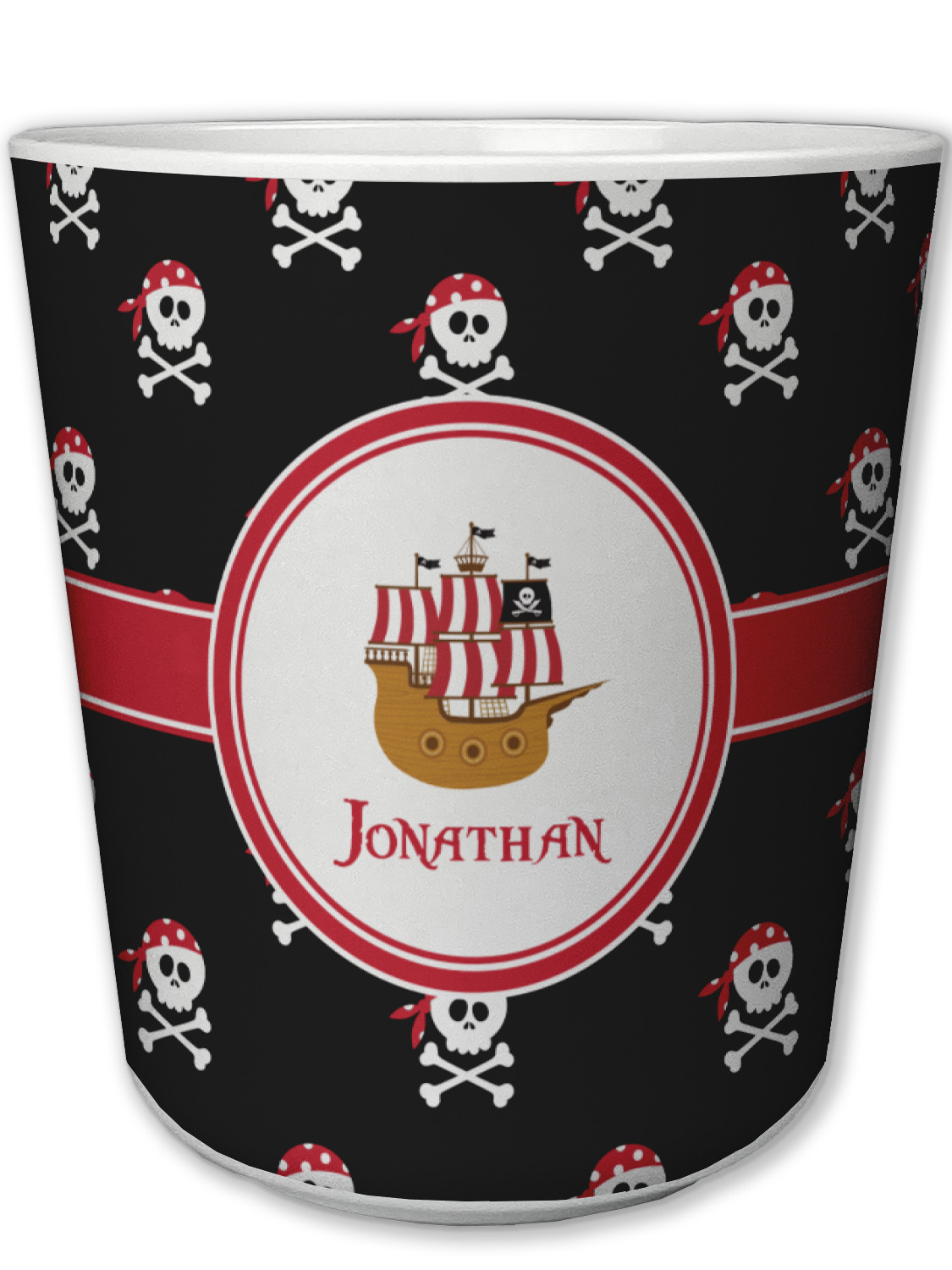 A circle label will have your little pirate imagining he or she is looking through a telescope seeing a pirate ship in the distance. Add personalization to bring this entire design to life.