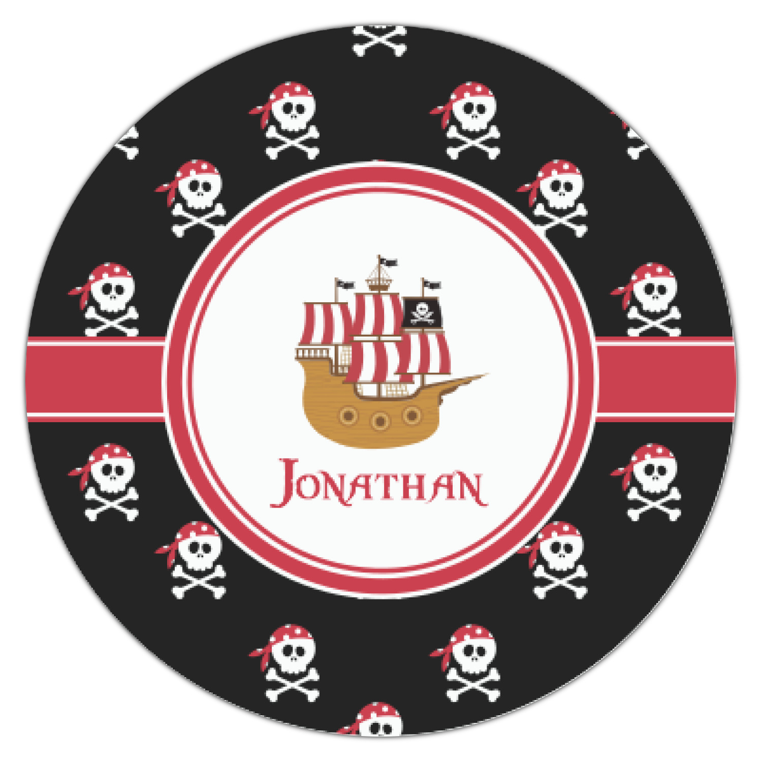 A circle label will have your little pirate imagining he or she is looking through a telescope seeing a pirate ship in the distance. Add personalization to bring this entire design to life.