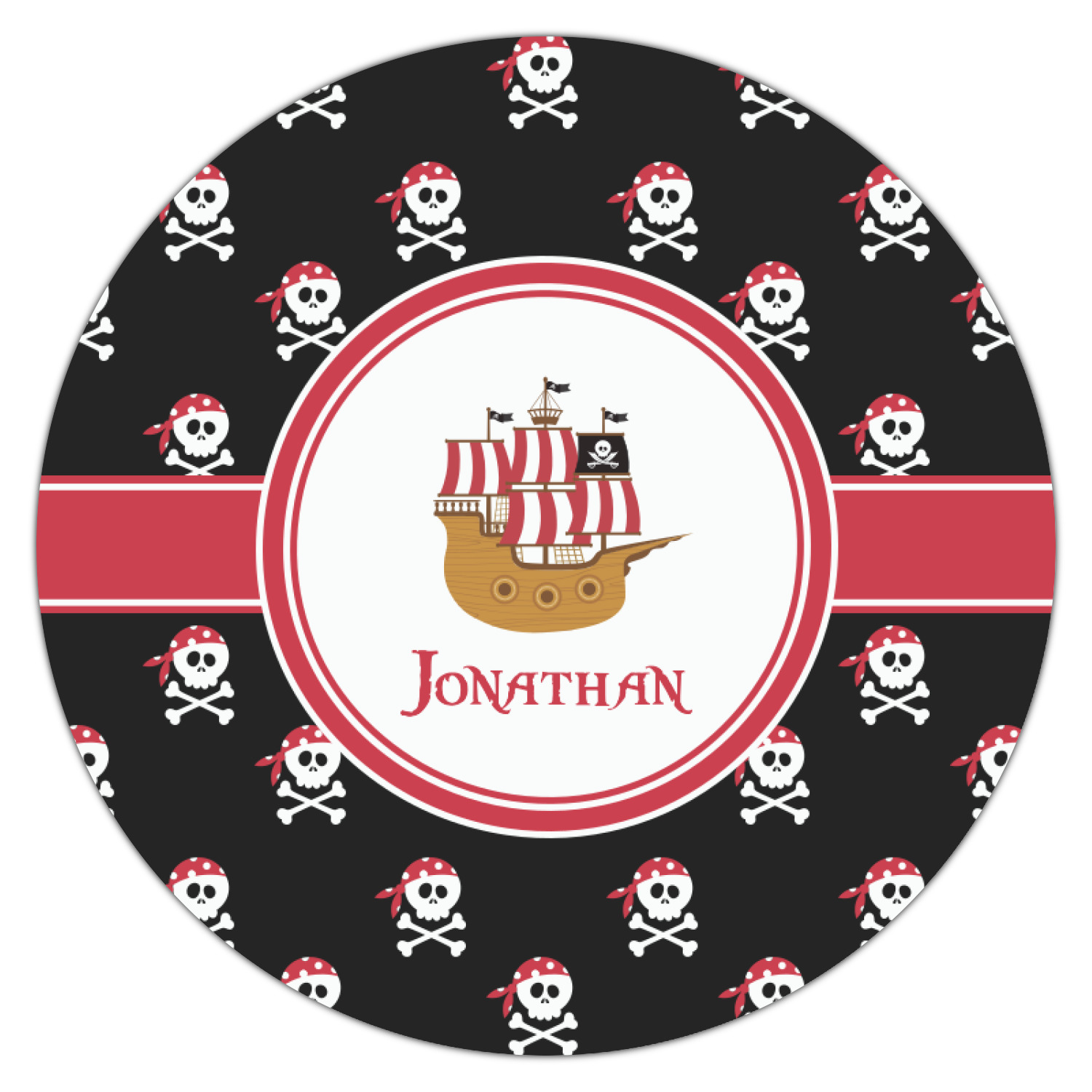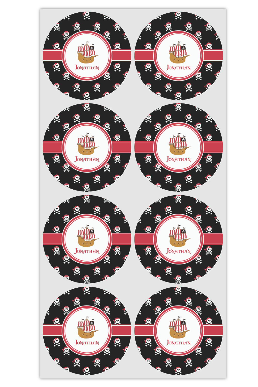 A circle label will have your little pirate imagining he or she is looking through a telescope seeing a pirate ship in the distance. Add personalization to bring this entire design to life.