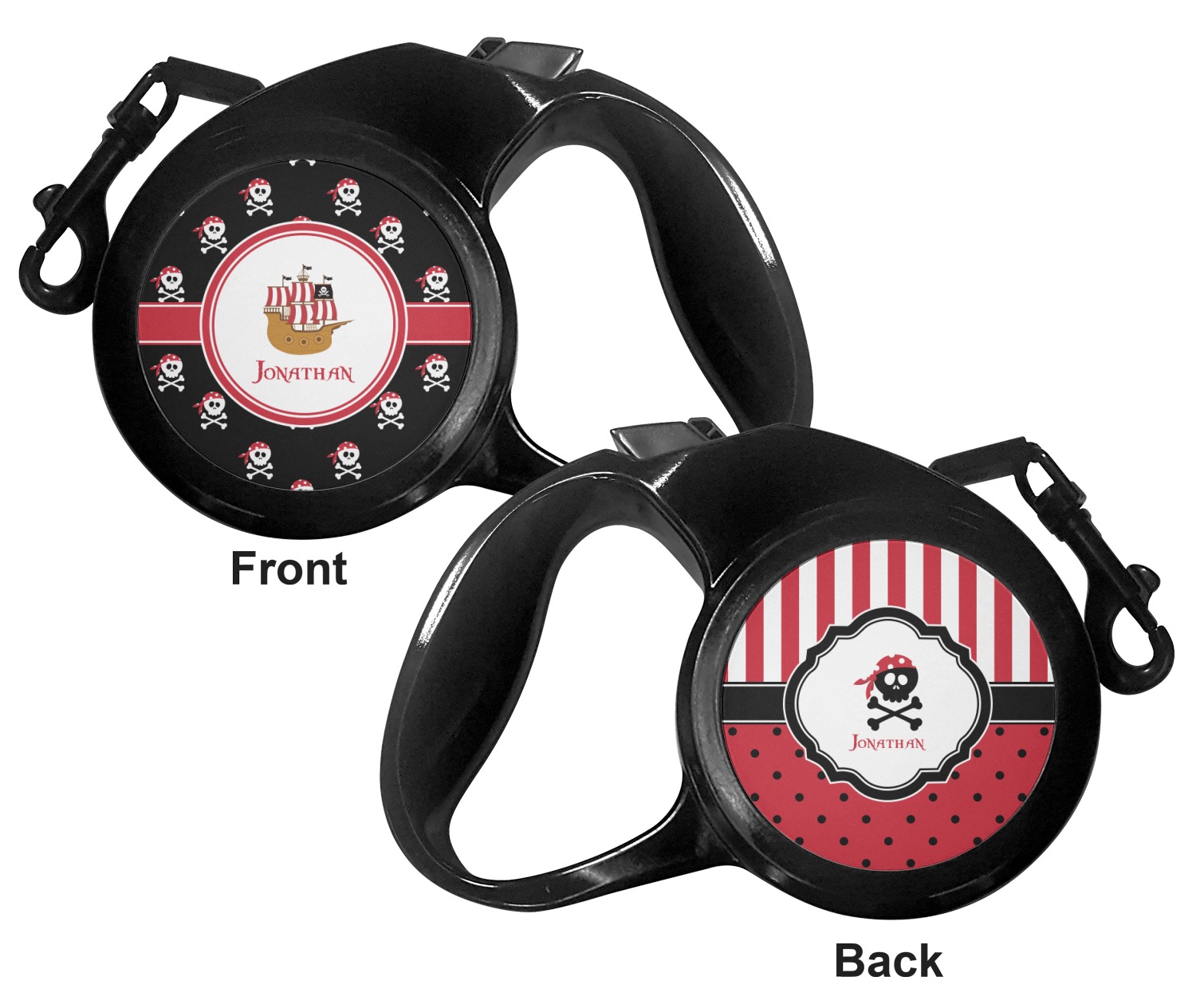 The leash's plastic handle is accommodating of your grip and displays your customization on both sides. The dog leash also features the traditional bolt snap clip, for easy fastening to your dog's collar. The leash and leash handle themselves are both black in color.