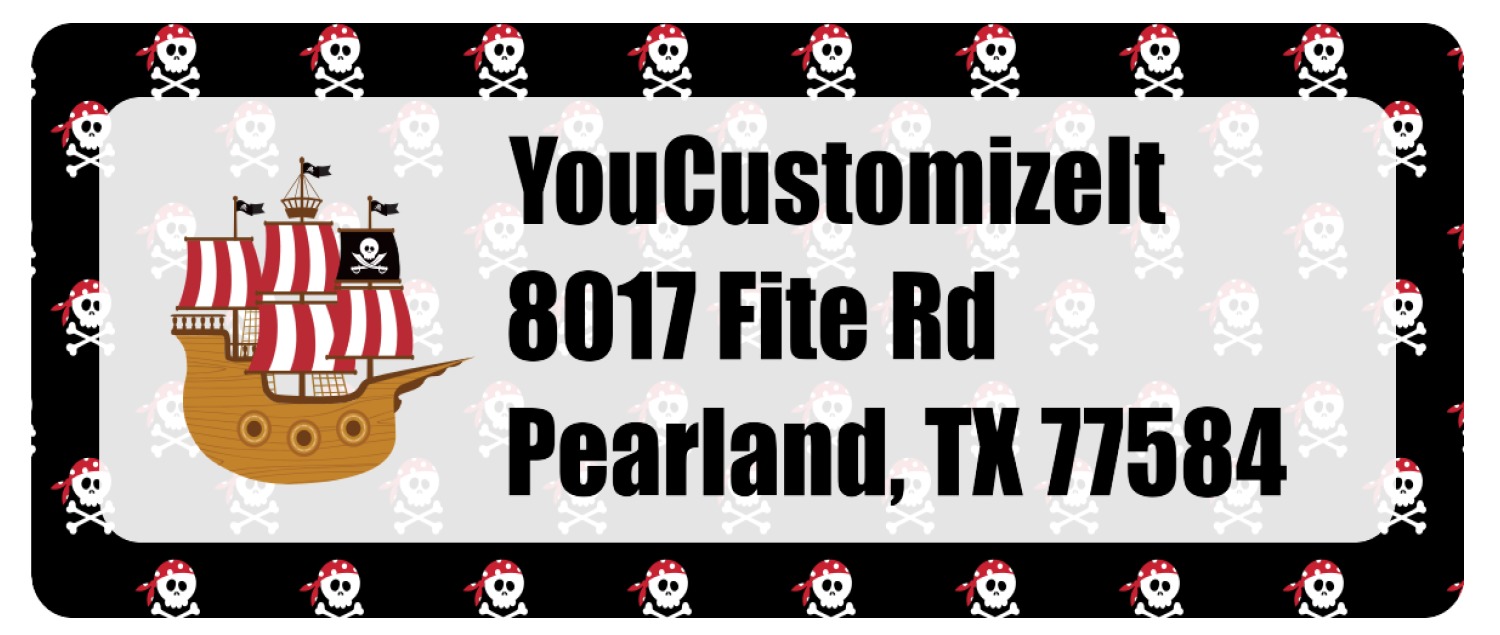 A circle label will have your little pirate imagining he or she is looking through a telescope seeing a pirate ship in the distance. Add personalization to bring this entire design to life.