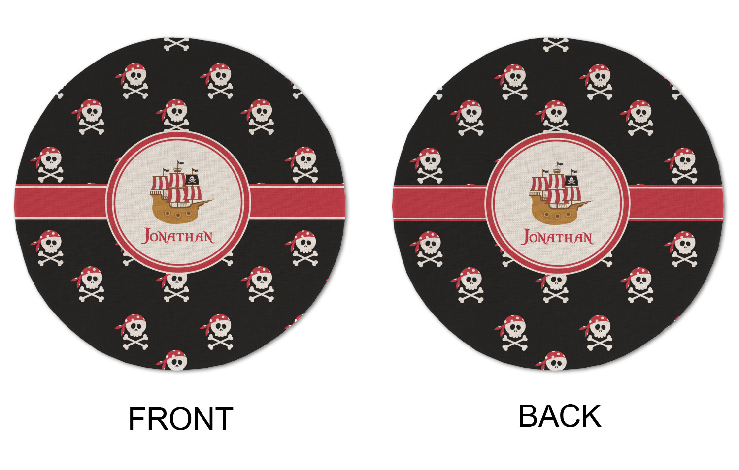 Pirate Ship Designs for Round Linen Placemats - Double-Sided - Single