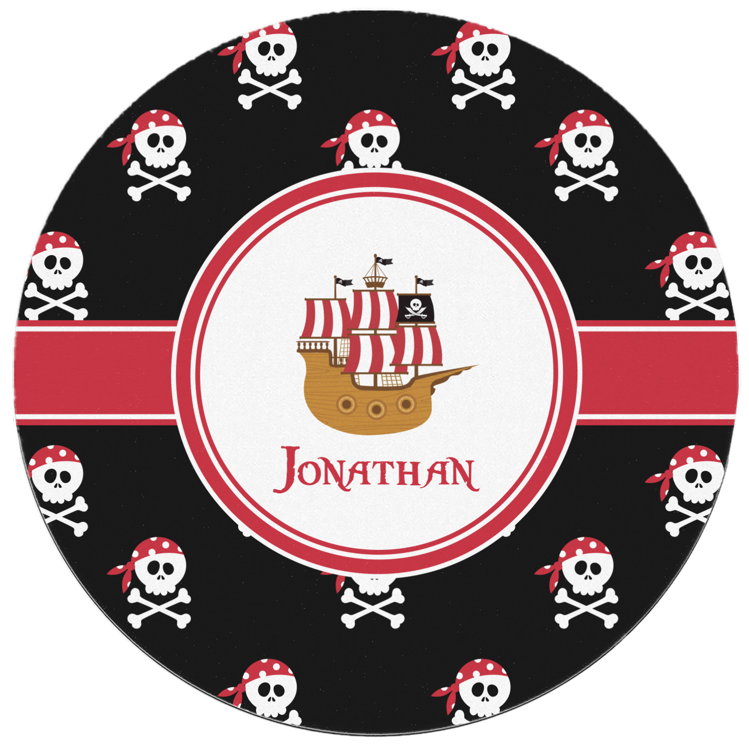 A circle label will have your little pirate imagining he or she is looking through a telescope seeing a pirate ship in the distance. Add personalization to bring this entire design to life.