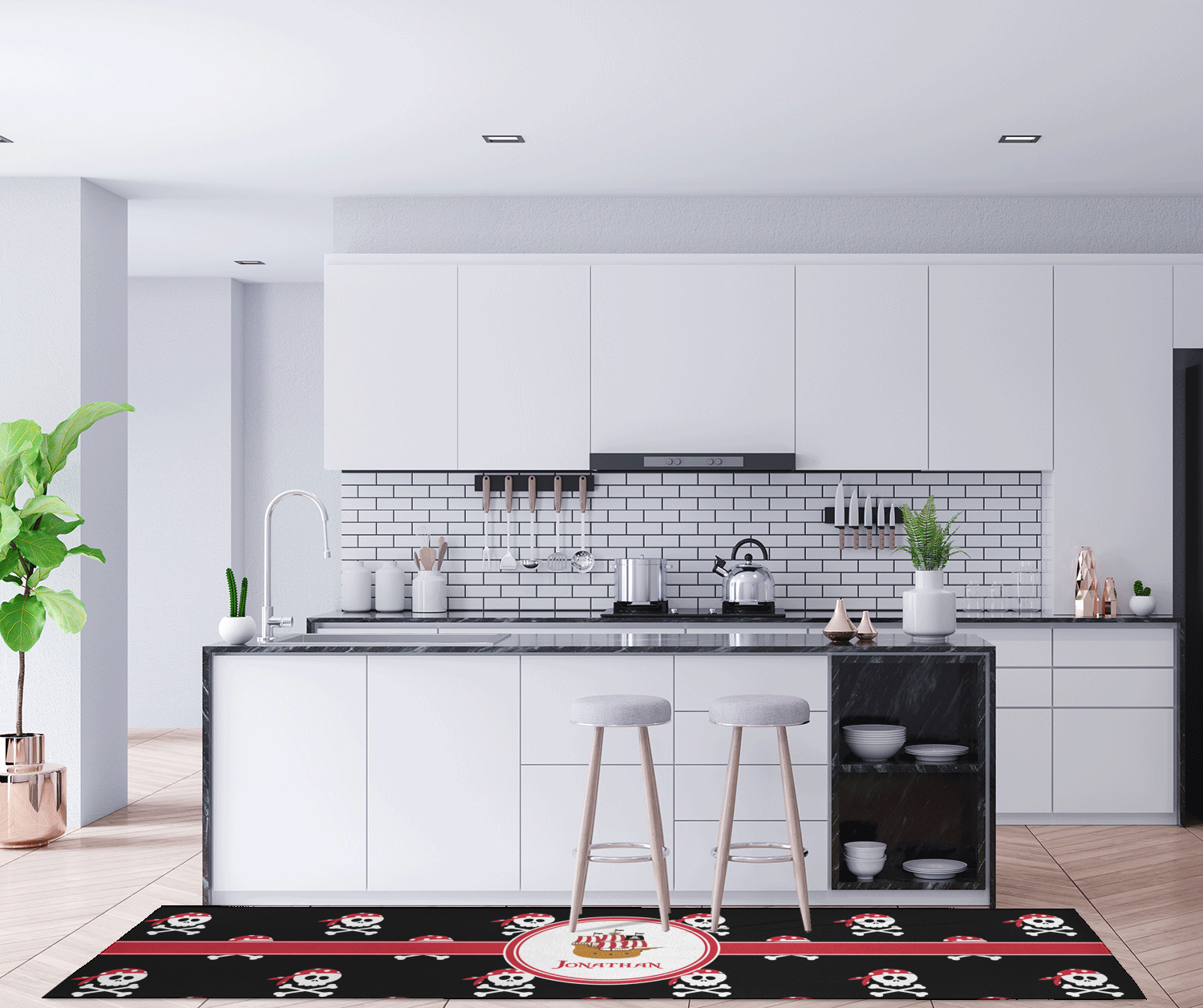 If you want to design it for your hallway - a vertical design is the perfect fit. If designing for to go in front of your kitchen island a horizontal design would suit you best! In our design system you can rotate the design either way to get the product you want.
