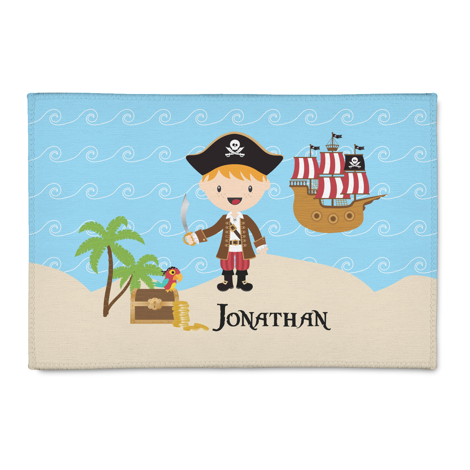 Do you have a wee laddie that dreams of great adventures on the sea? If yes, then bring his imagination to life with this great pirate design. Our little pirate is set on an ocean shore with his treasure chest, his pirate ship is set off in the background waiting for his return.