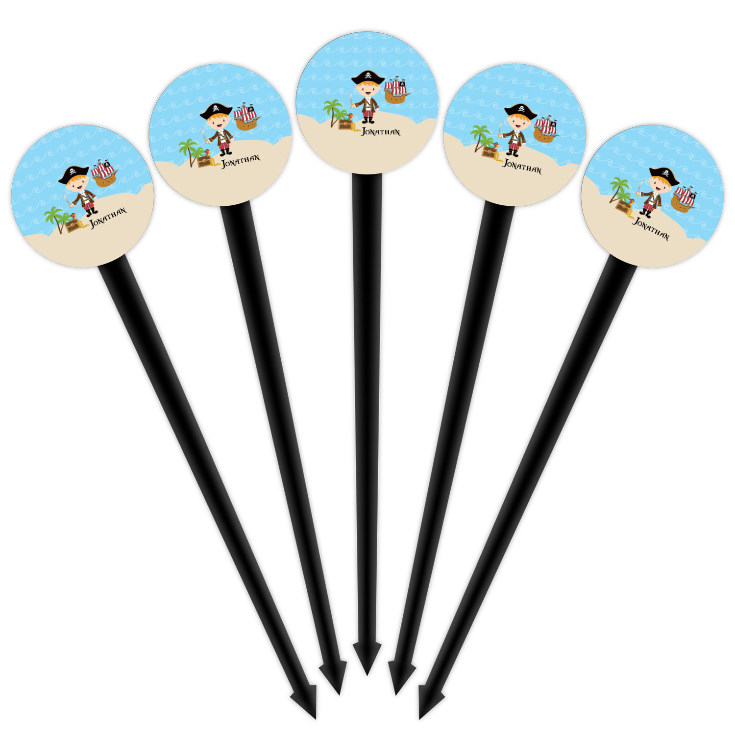 Pirate Boy Designs for 4" Round Plastic Food Picks - Black - Single-Sided