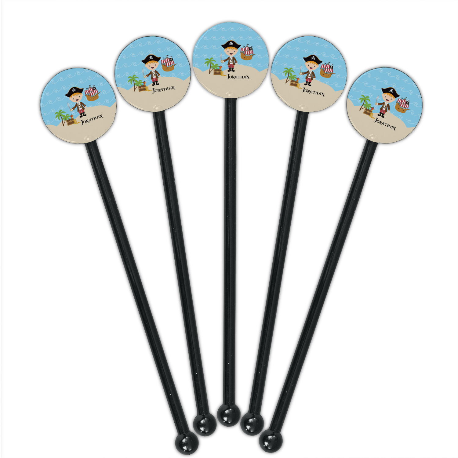 Pirate Boy Designs for 5.5" Round Plastic Stir Sticks - Black - Single-Sided
