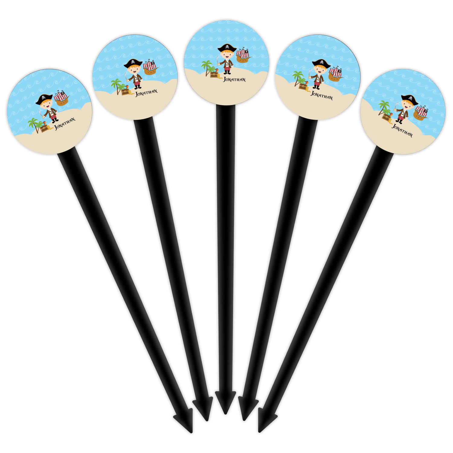 Pirate Boy Designs for 6" Round Plastic Food Picks - Black - Single-Sided