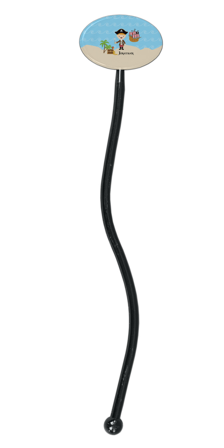 Pirate Boy Designs for 7" Oval Plastic Stir Sticks - Black - Single-Sided