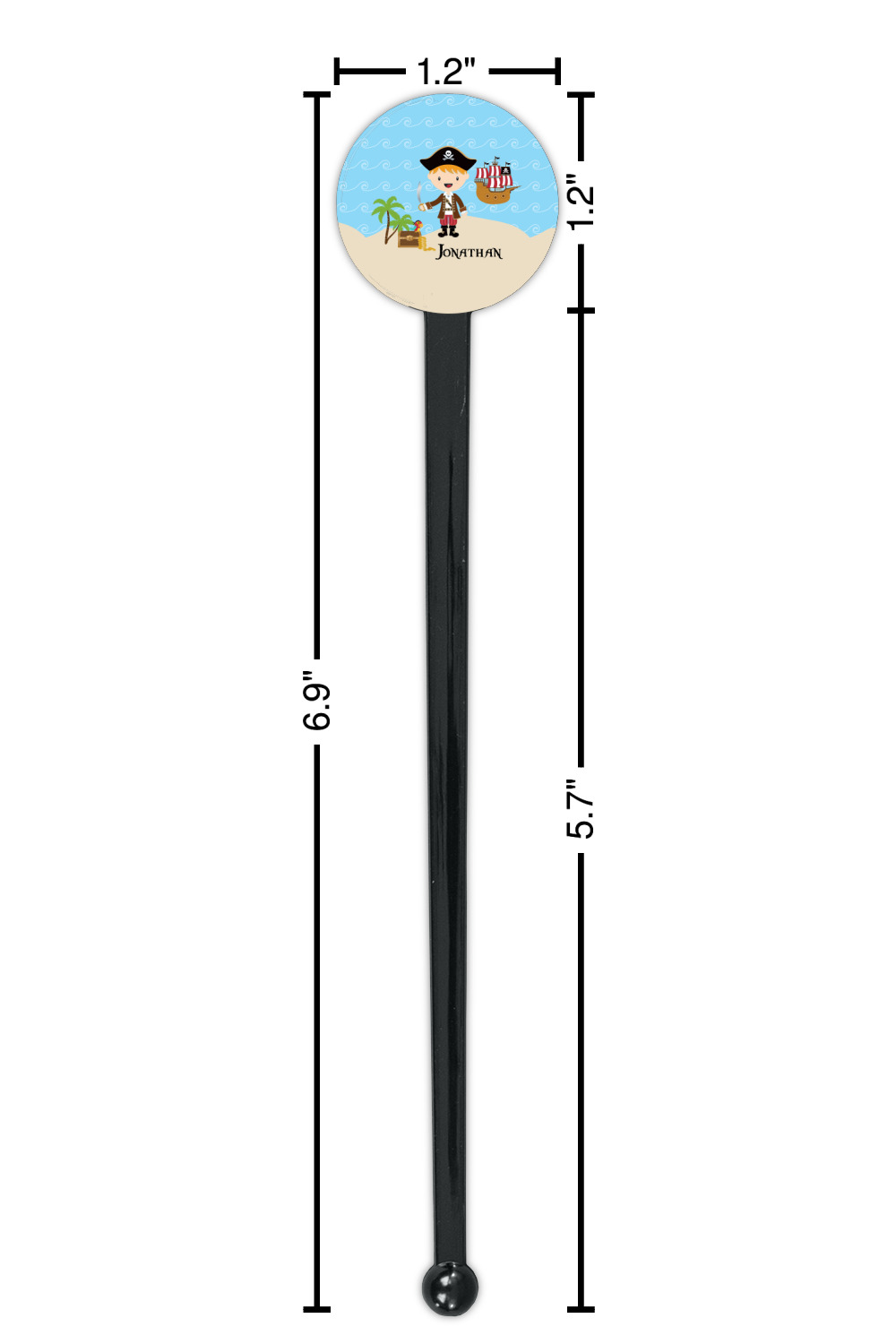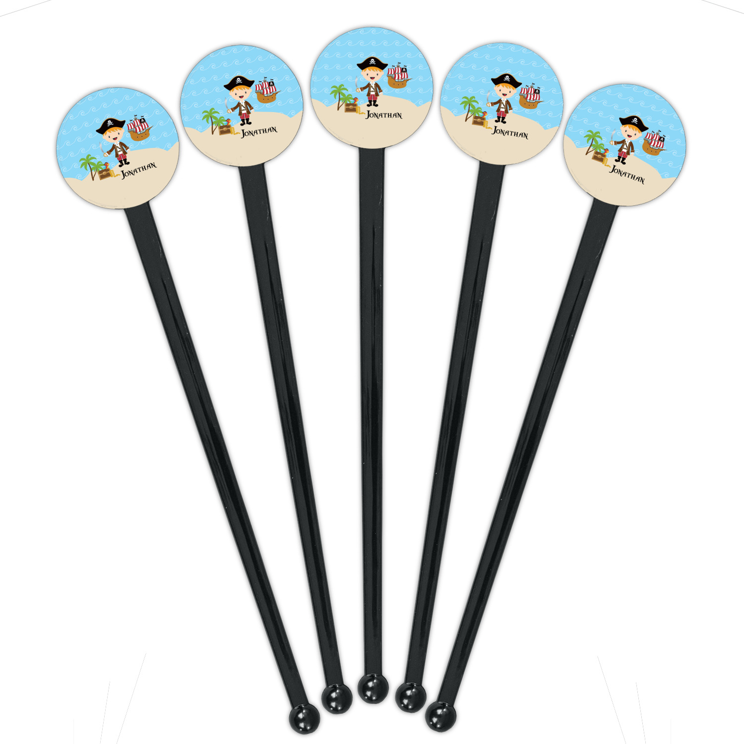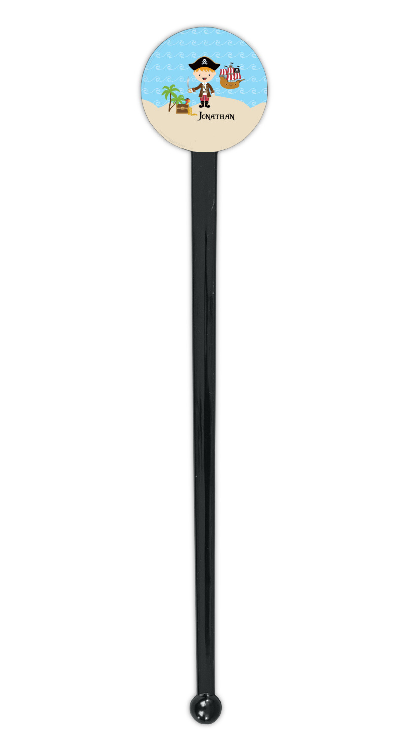 Pirate Boy Designs for 7" Round Plastic Stir Sticks - Black - Single-Sided