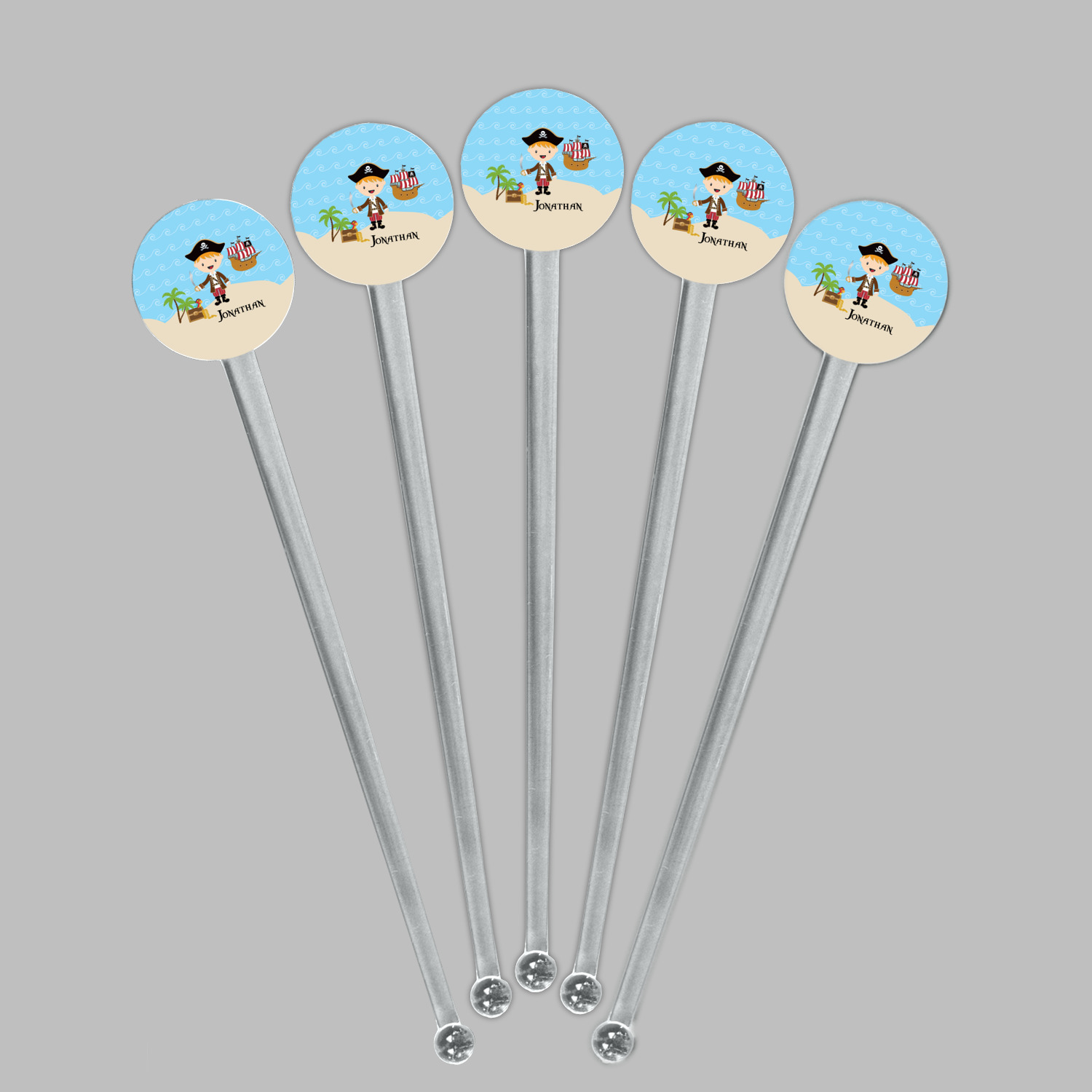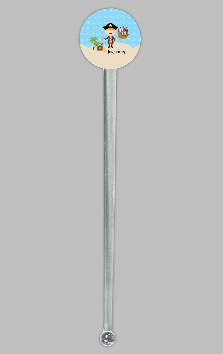Pirate Boy Designs for 7" Round Plastic Stir Sticks - Clear