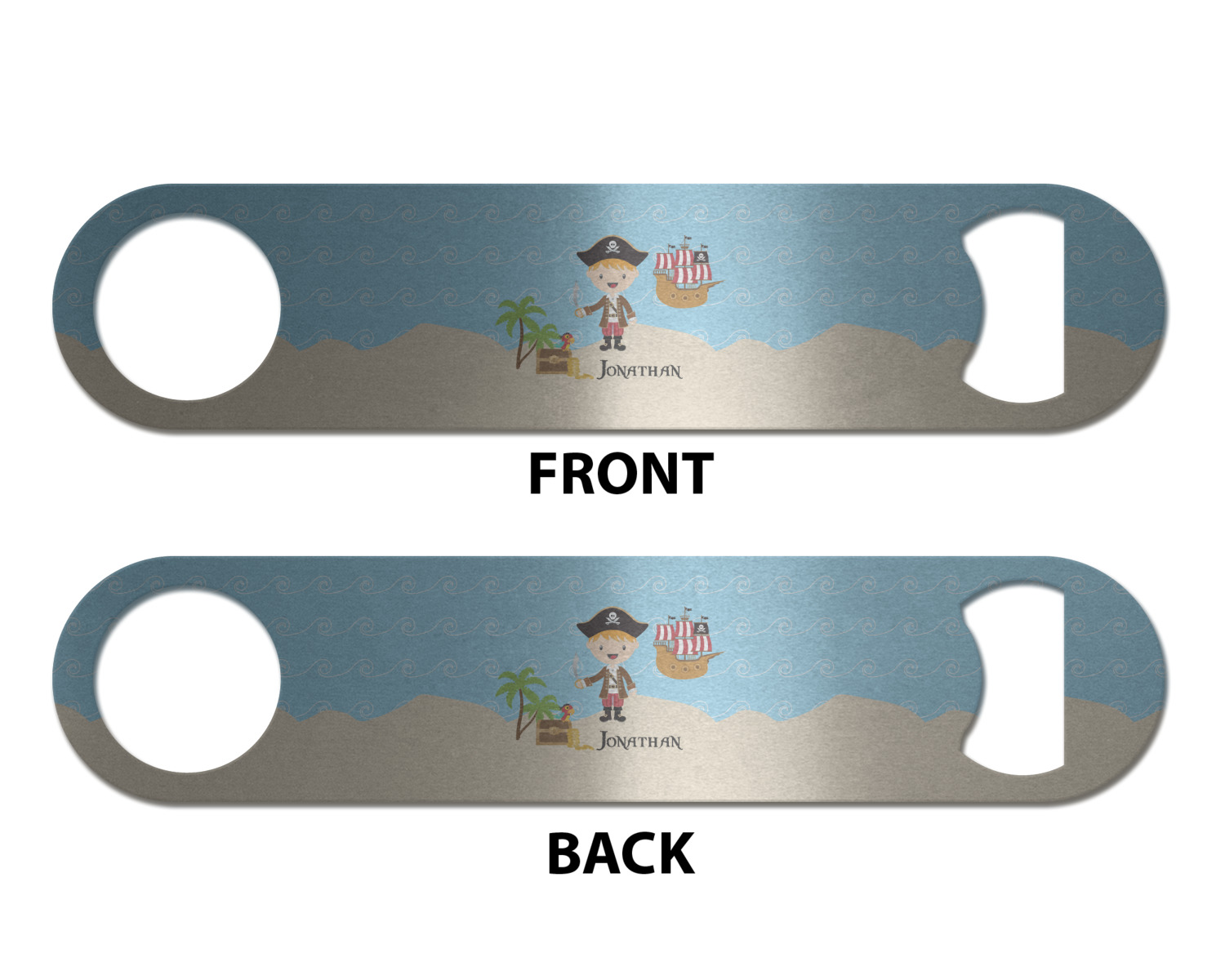 Stop struggling with the caps or your bottled beverages by purchasing one of our personalized bottle openers! These wrench-like custom bar blades are built to last. Customize one for your home's bar, or as a practical gift for a loved one!