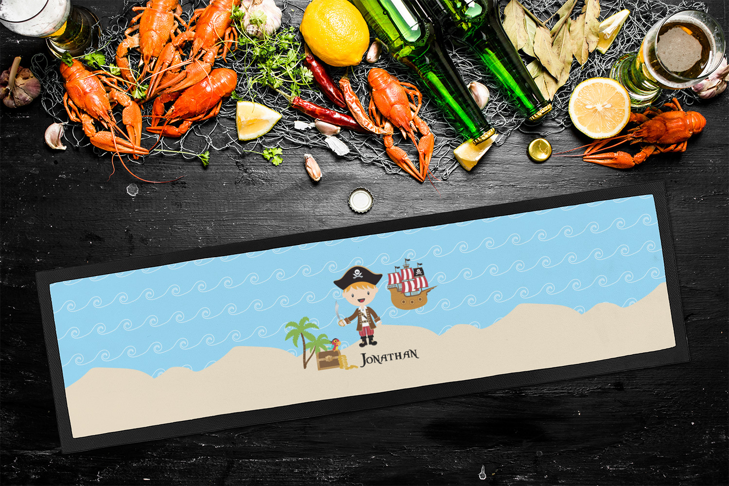Do you have a wee laddie that dreams of great adventures on the sea? If yes, then bring his imagination to life with this great pirate design. Our little pirate is set on an ocean shore with his treasure chest, his pirate ship is set off in the background waiting for his return.