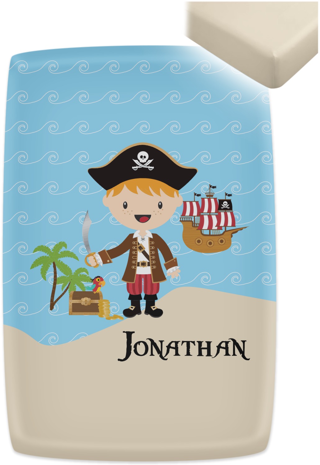 Do you have a wee laddie that dreams of great adventures on the sea? If yes, then bring his imagination to life with this great pirate design. Our little pirate is set on an ocean shore with his treasure chest, his pirate ship is set off in the background waiting for his return.