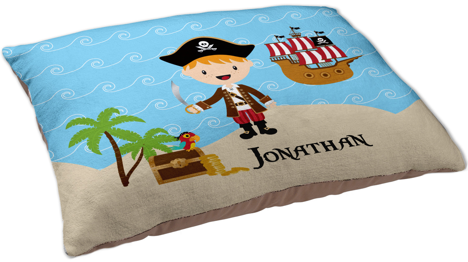 Do you have a wee laddie that dreams of great adventures on the sea? If yes, then bring his imagination to life with this great pirate design. Our little pirate is set on an ocean shore with his treasure chest, his pirate ship is set off in the background waiting for his return.