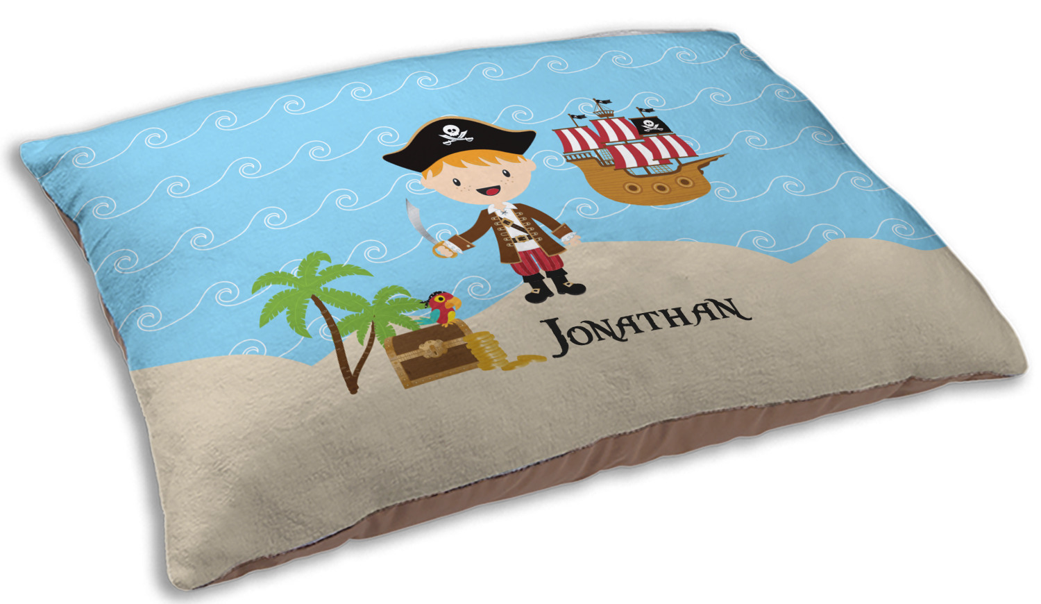 Do you have a wee laddie that dreams of great adventures on the sea? If yes, then bring his imagination to life with this great pirate design. Our little pirate is set on an ocean shore with his treasure chest, his pirate ship is set off in the background waiting for his return.