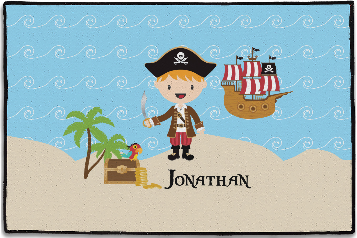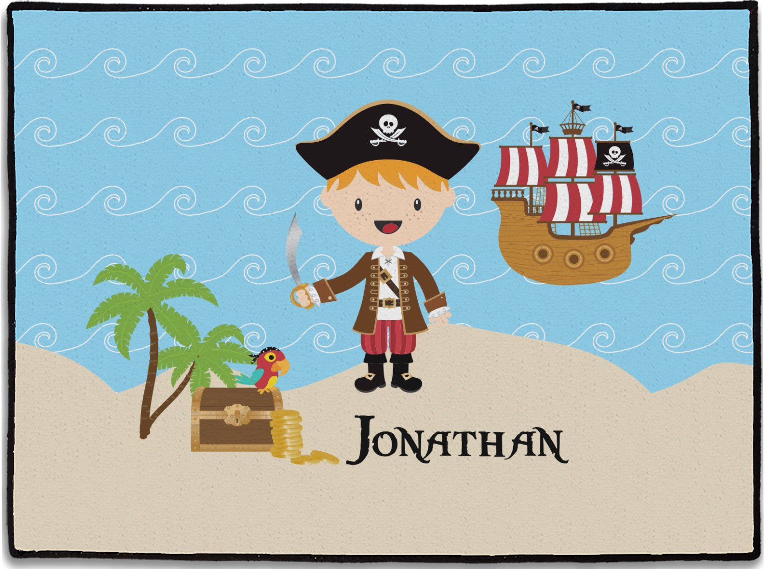 Do you have a wee laddie that dreams of great adventures on the sea? If yes, then bring his imagination to life with this great pirate design. Our little pirate is set on an ocean shore with his treasure chest, his pirate ship is set off in the background waiting for his return.