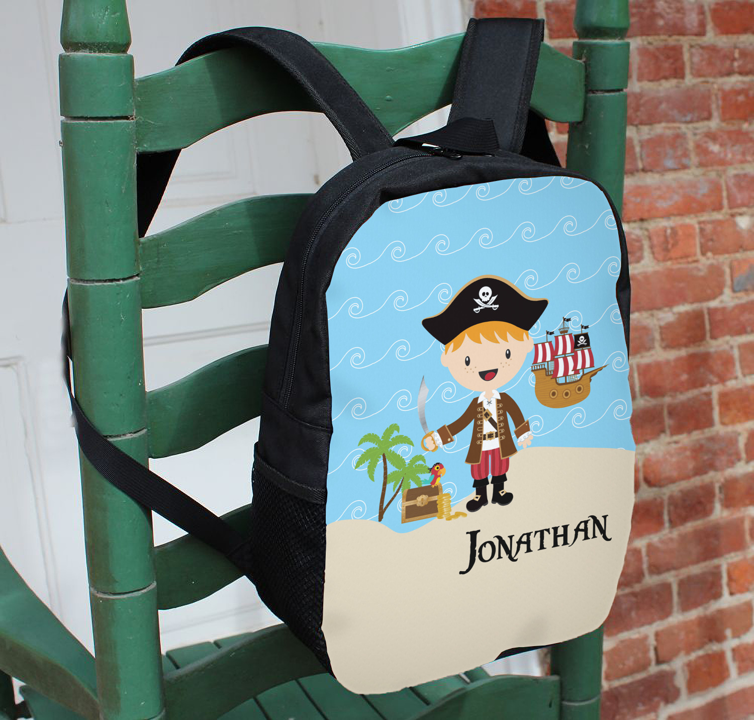 Do you have a wee laddie that dreams of great adventures on the sea? If yes, then bring his imagination to life with this great pirate design. Our little pirate is set on an ocean shore with his treasure chest, his pirate ship is set off in the background waiting for his return.