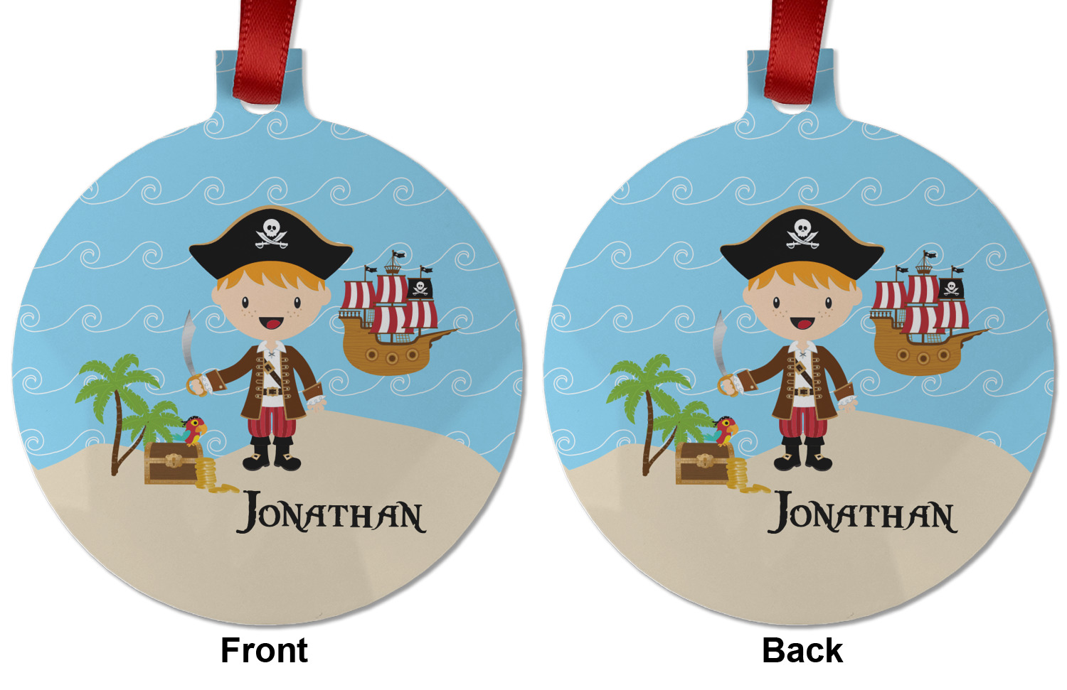 Do you have a wee laddie that dreams of great adventures on the sea? If yes, then bring his imagination to life with this great pirate design. Our little pirate is set on an ocean shore with his treasure chest, his pirate ship is set off in the background waiting for his return.