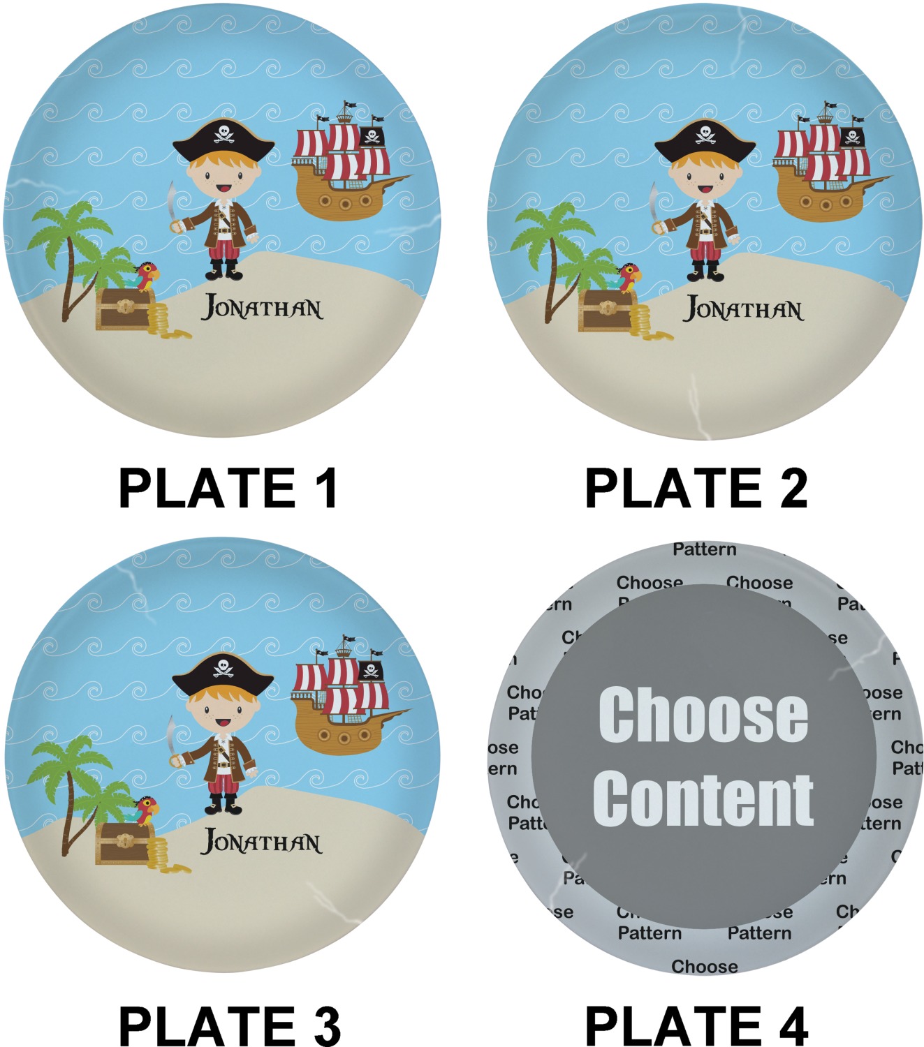 Pirate Boy Designs for Glass Lunch / Dinner Plates 10" - Set of 4