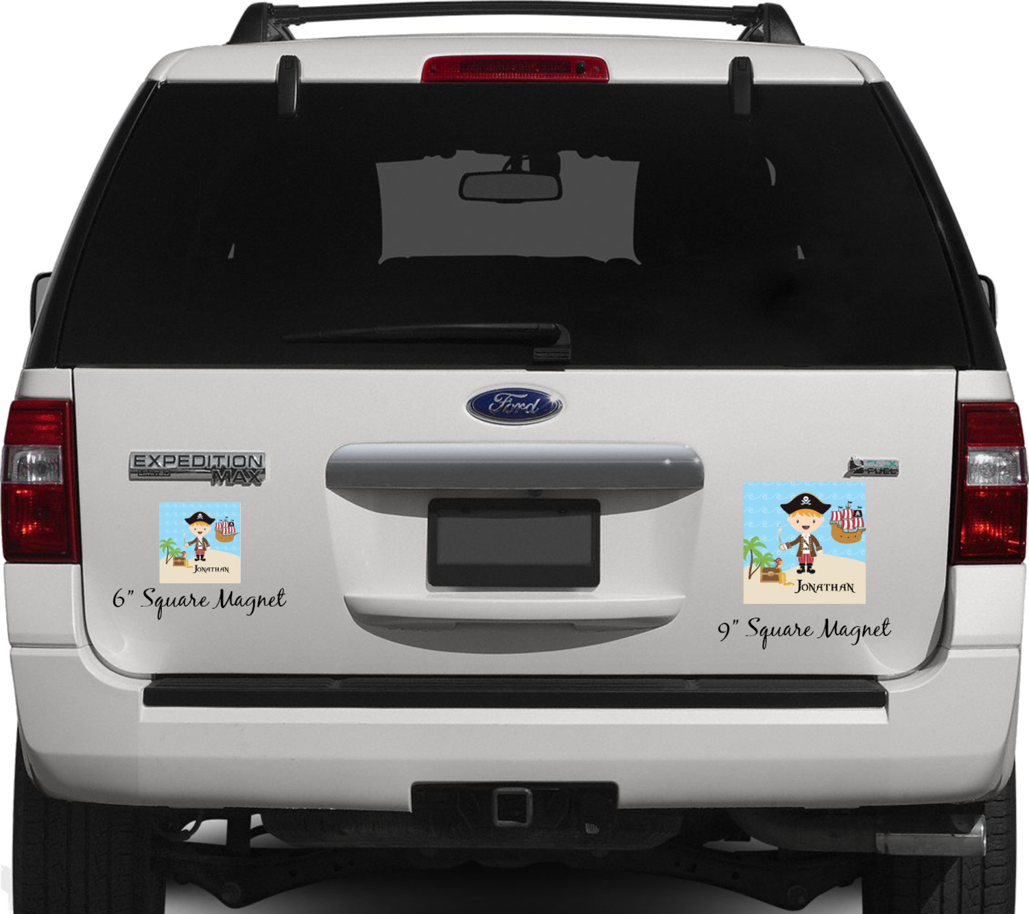 Your personalized car magnets are available for purchase in two shapes and two sizes. We carry round and square editions; each shape can either be 6 by 6 inches, or 10 by 10 inches, depending on your needs. Both versions are 1 millimeter thick, which is considered, within the industry, as the ideal thickness for automobile magnets. The magnetic car decals will adhere to any smooth, metal surface of your cars body, such as the trunk door or a side panel. However, please note that some vehicles are constructed from fiberglass bodies, which prevents the adhesion of anything magnetic. We advise that you test your vehicle before purchasing these magnets.