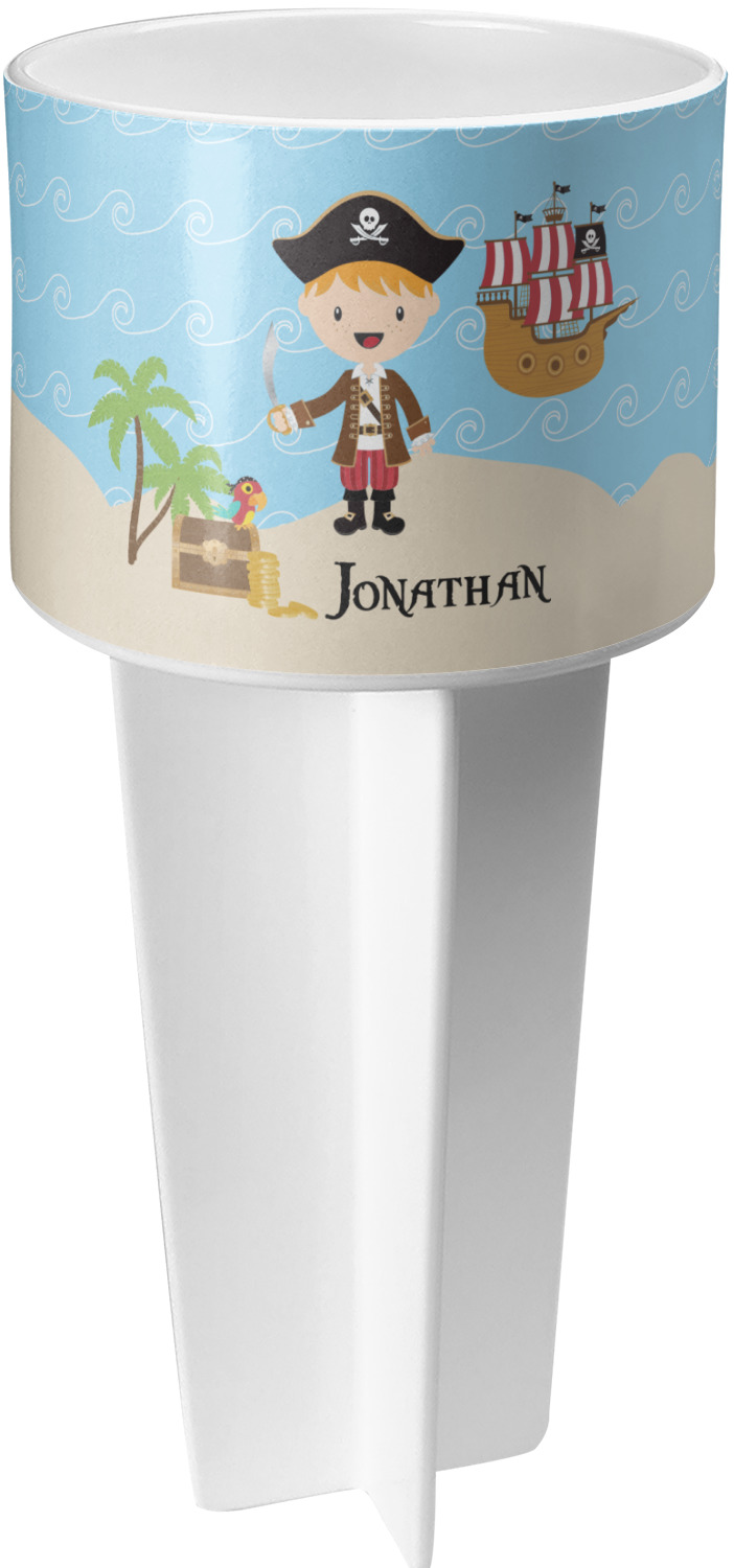 This cup holder has a large stake at its bottom that anchors it to the sand or ground below, while the cup holder rests above the stake. The entire drink holder is made of durable plastic and displays your customization around the cup holder portion. We sell these personalized beach spikers in two different colors: black and white.
