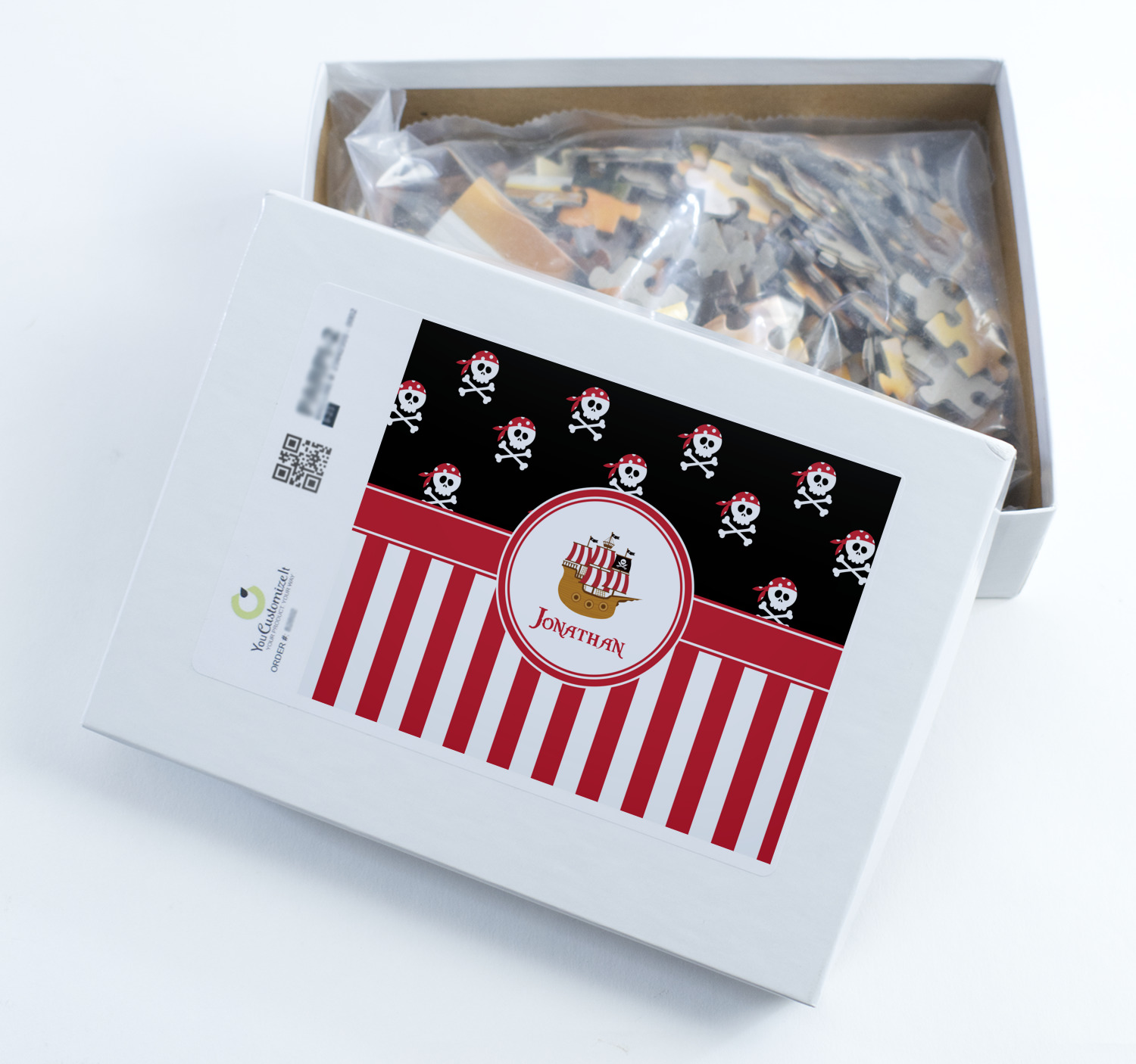 You can also upload your logo or art that you or your kids drew. To create more challenging jigsaw puzzles, you can create a pattern from with your logo or artwork. You can also add other elements such as text or personalization.